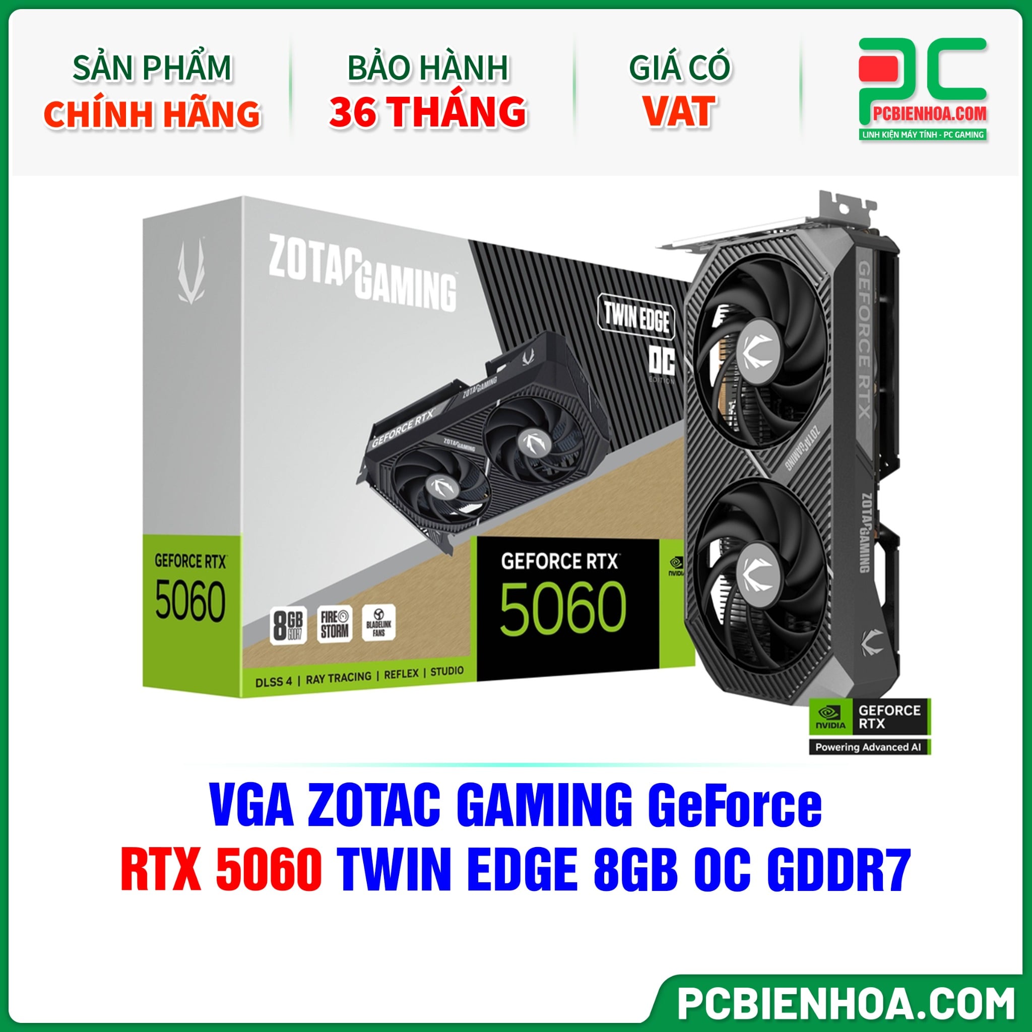 VGA ZOTAC GAMING GeForce RTX 5060 TWIN EDGE 8GB OC GDDR7 (ZT-B50600H-10M)