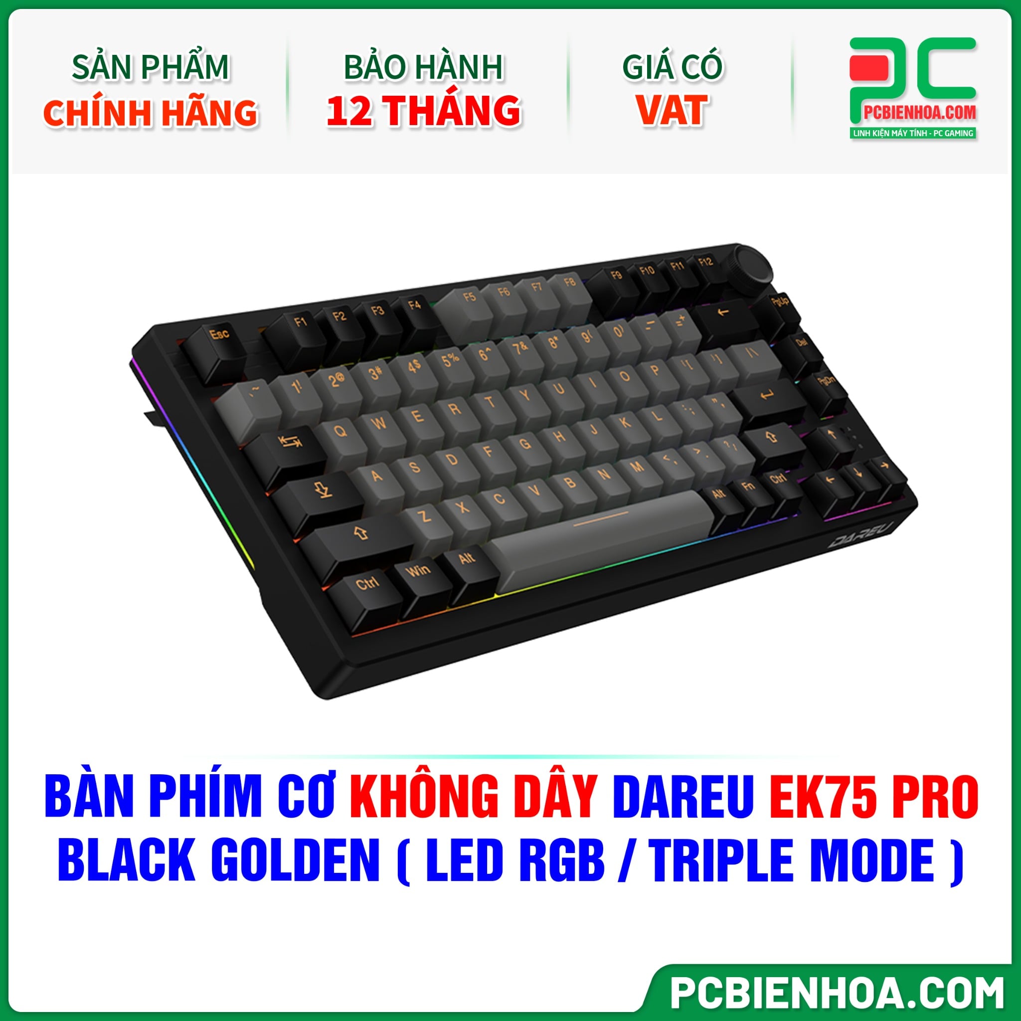 BÀN PHÍM CƠ KHÔNG DÂY DAREU EK75 PRO BLACK GOLDEN ( LED RGB / TRIPLE MODE )