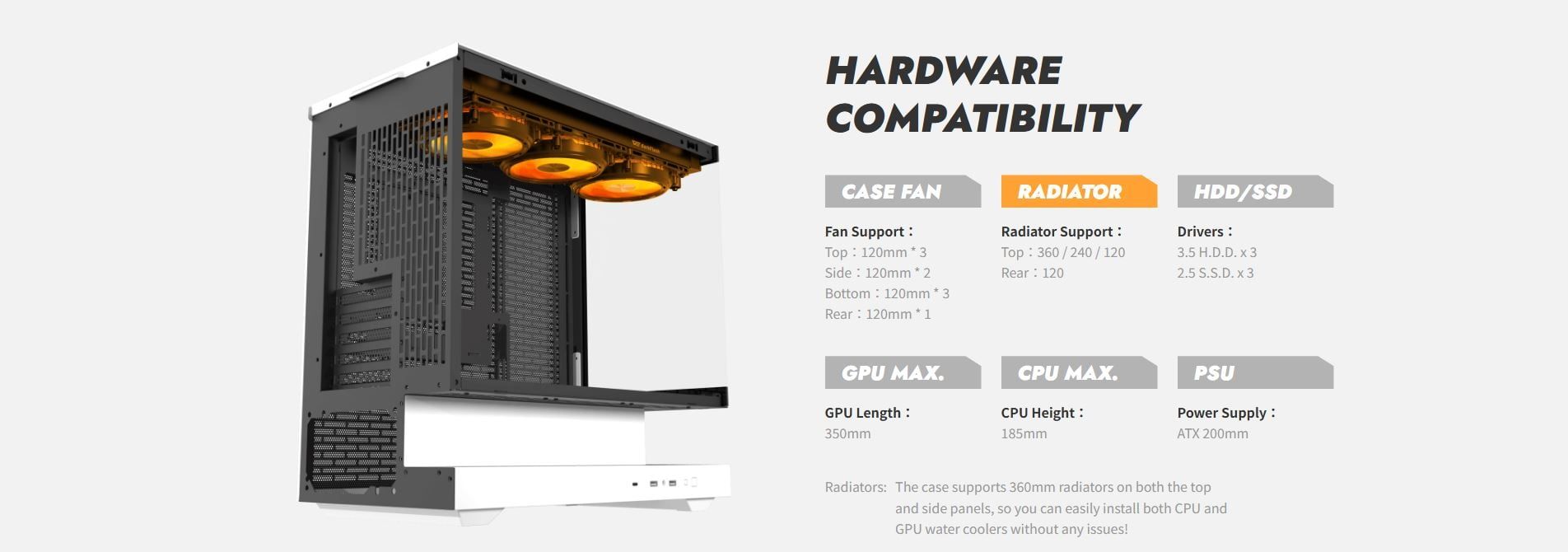 Fan Support | Top: 120mm*3 / 140mm*2 |