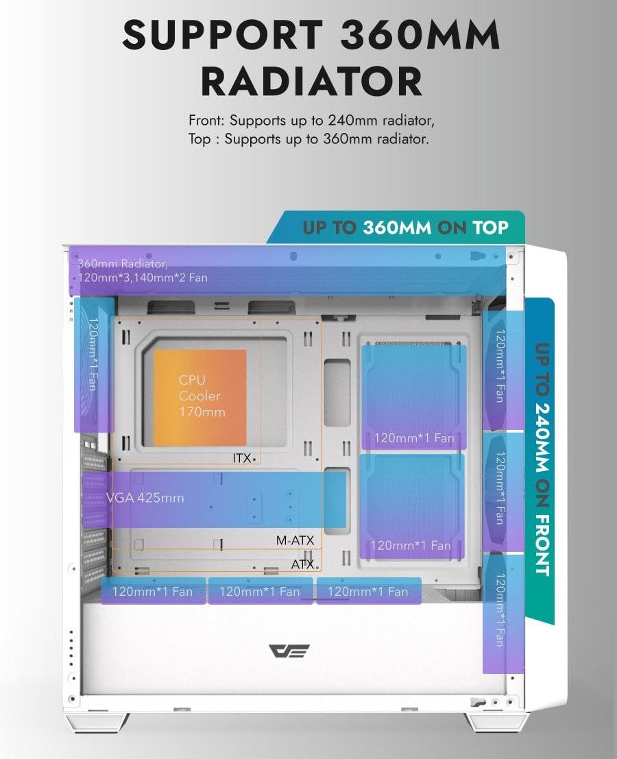 CASE DARKFLASH DS900WD WHITE ( ATX - CHƯA KÈM FAN )