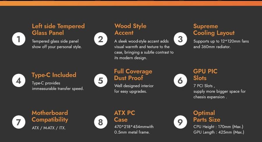 Fan Support | Top:120mm*3 / 140mm*2 |