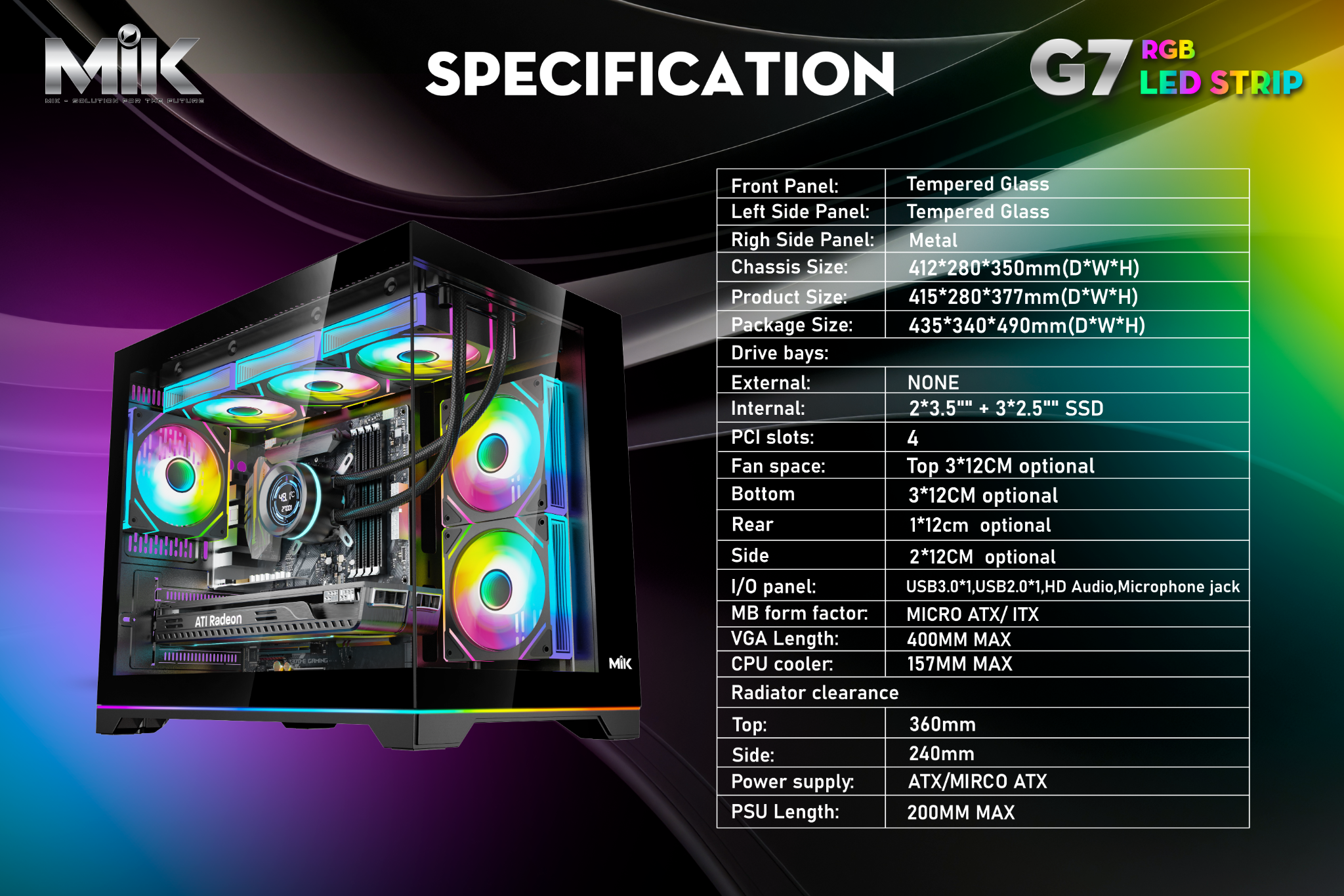 CASE MIK G7 LED STRIP ( MATX - CHƯA KÈM FAN )