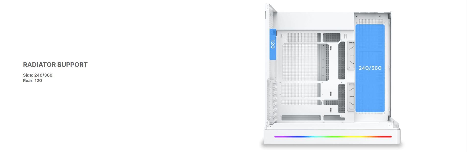 Hỗ trợ Radiator | Bên hông: 240 / 360mm Sau: 120mm |