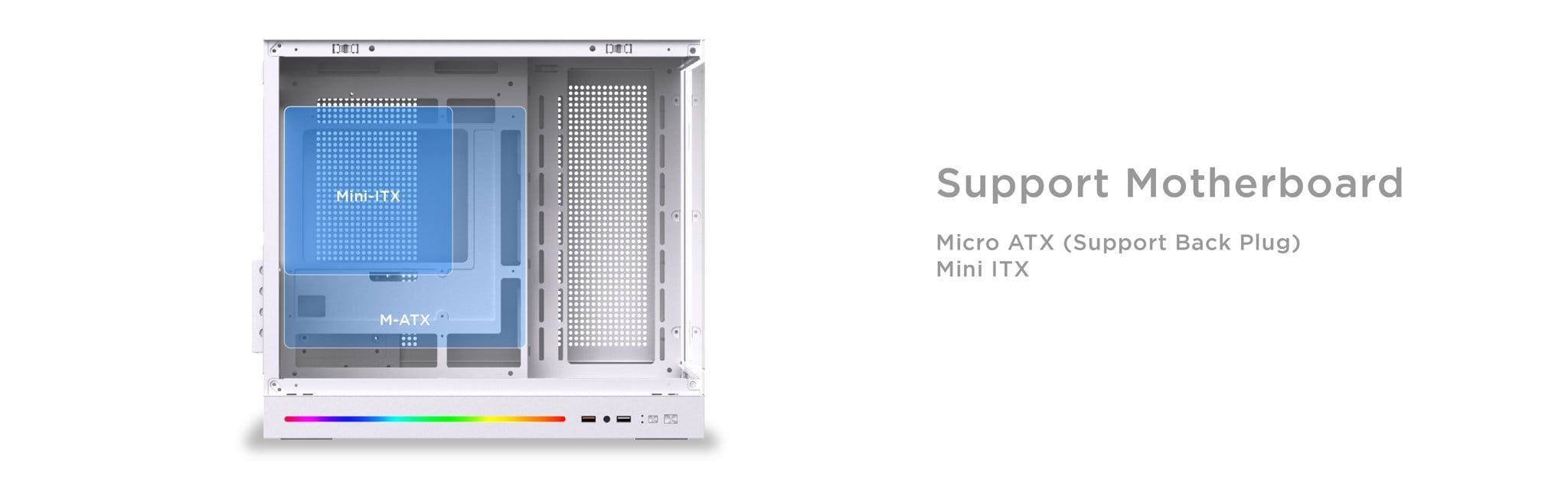Hỗ trợ bo mạch | Micro ATX (hỗ trợ main Back Plug)/Mini ITX |