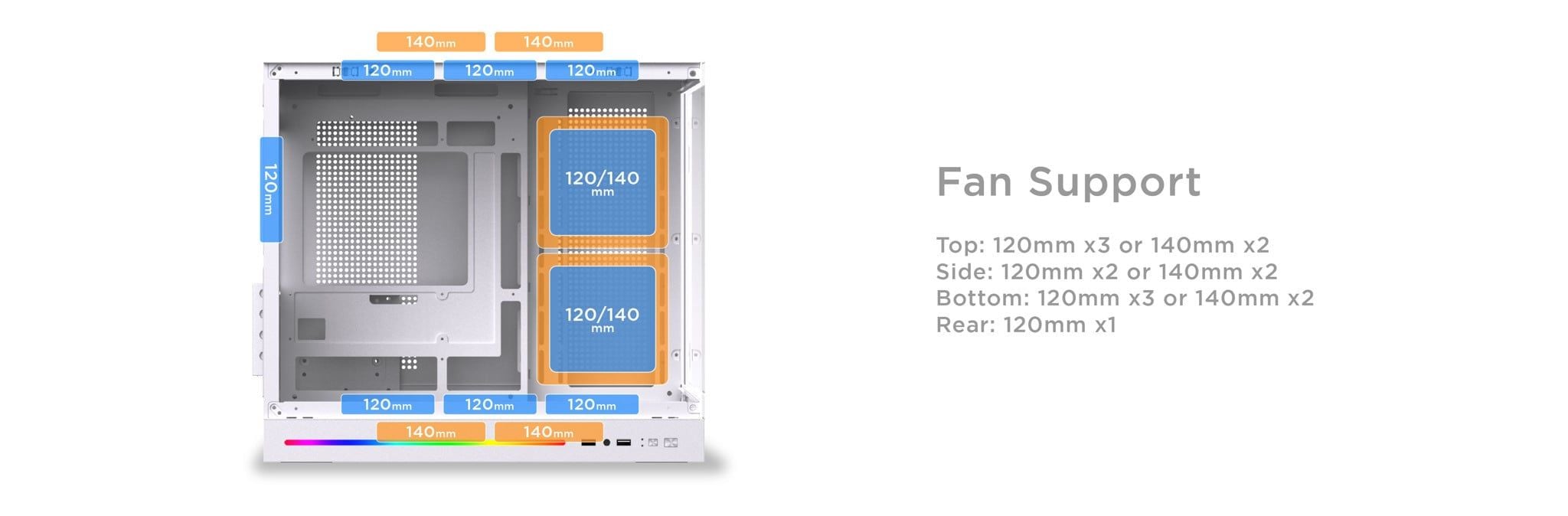 Hỗ trợ quạt | Trên (Top): 3 x 120mm hoặc 2 x 140mm |