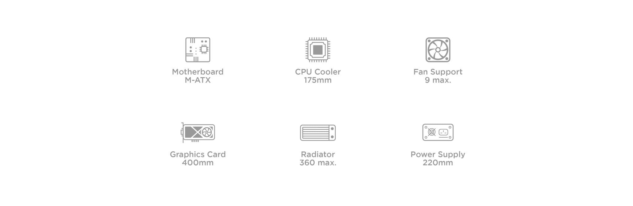 Chiều cao tản nhiệt CPU tối đa | 175mm |