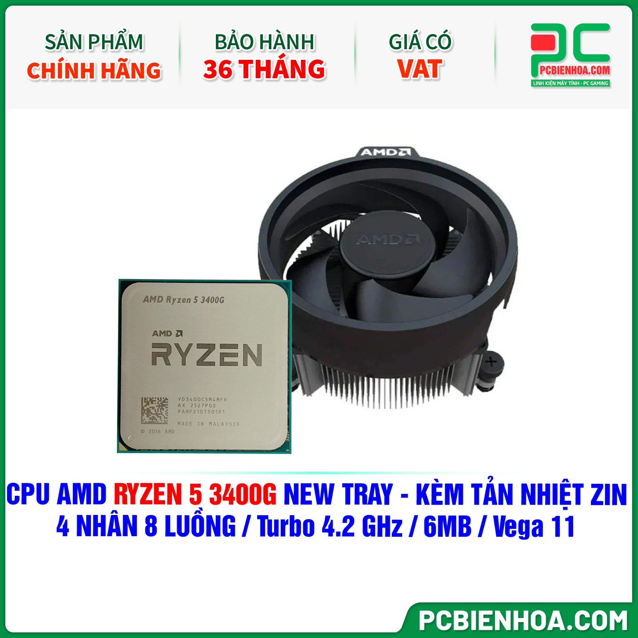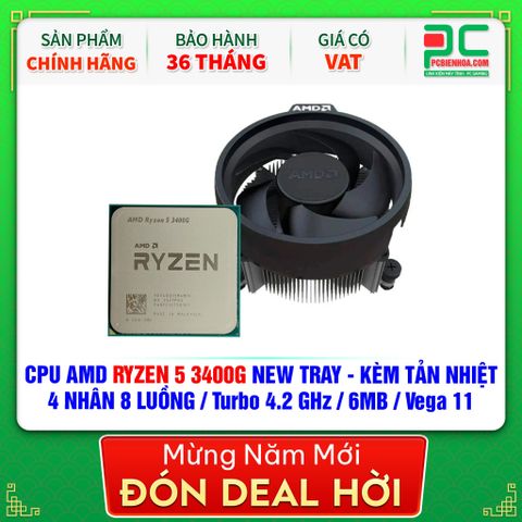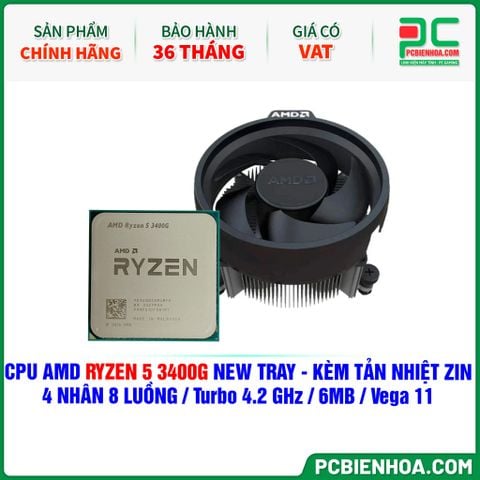 CPU AMD RYZEN 5 3400G NEW TRAY CHÍNH HÃNG - CÓ KÈM TẢN NHIỆT ( 4 NHÂN 8 LUỒNG / Turbo 4.2 GHz / 6MB / Vega 11 Graphics )