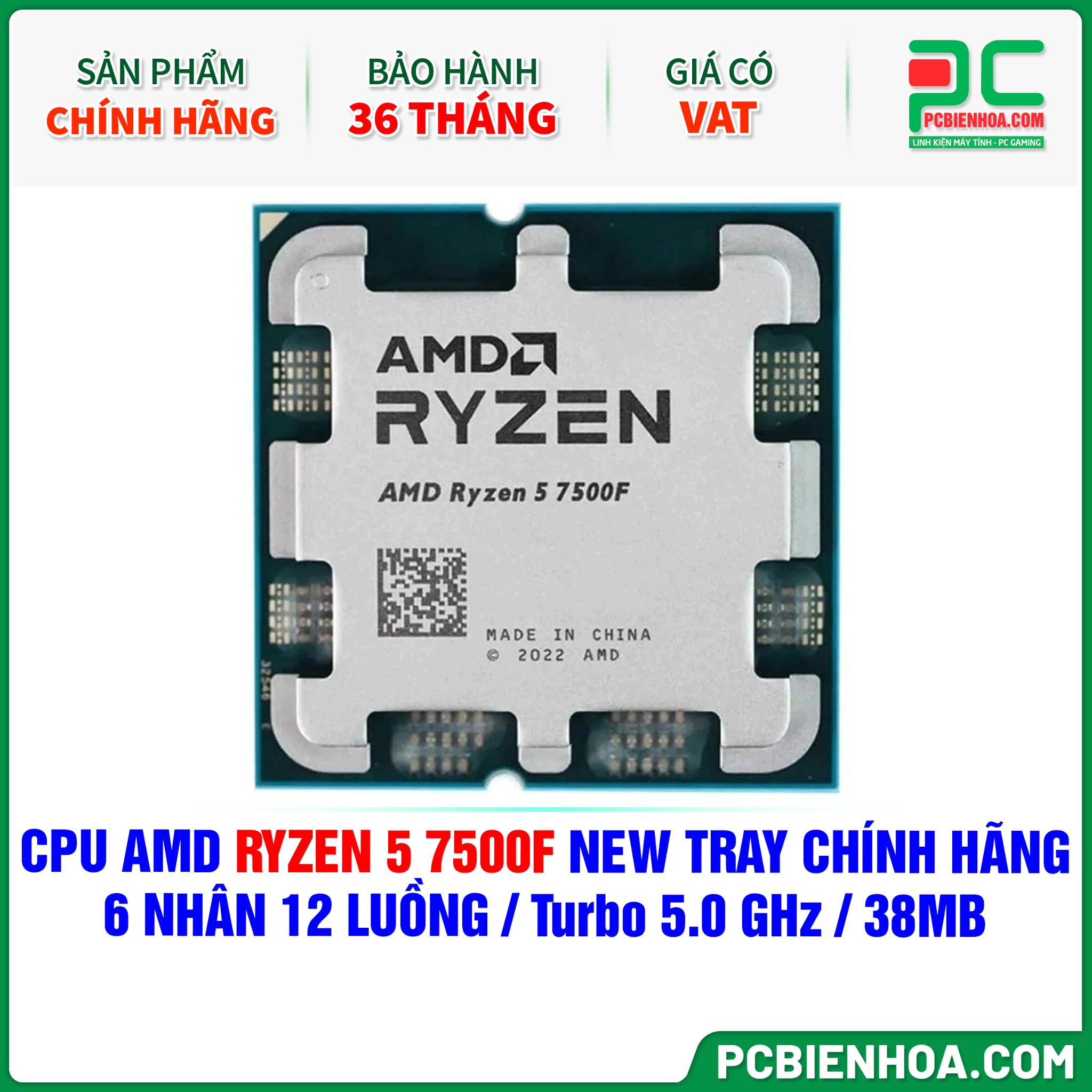 CPU AMD Ryzen 5 7500F NEW TRAY CHÍNH HÃNG ( 6 NHÂN 12 LUỒNG / Turbo 5.0 GHz / 38MB )