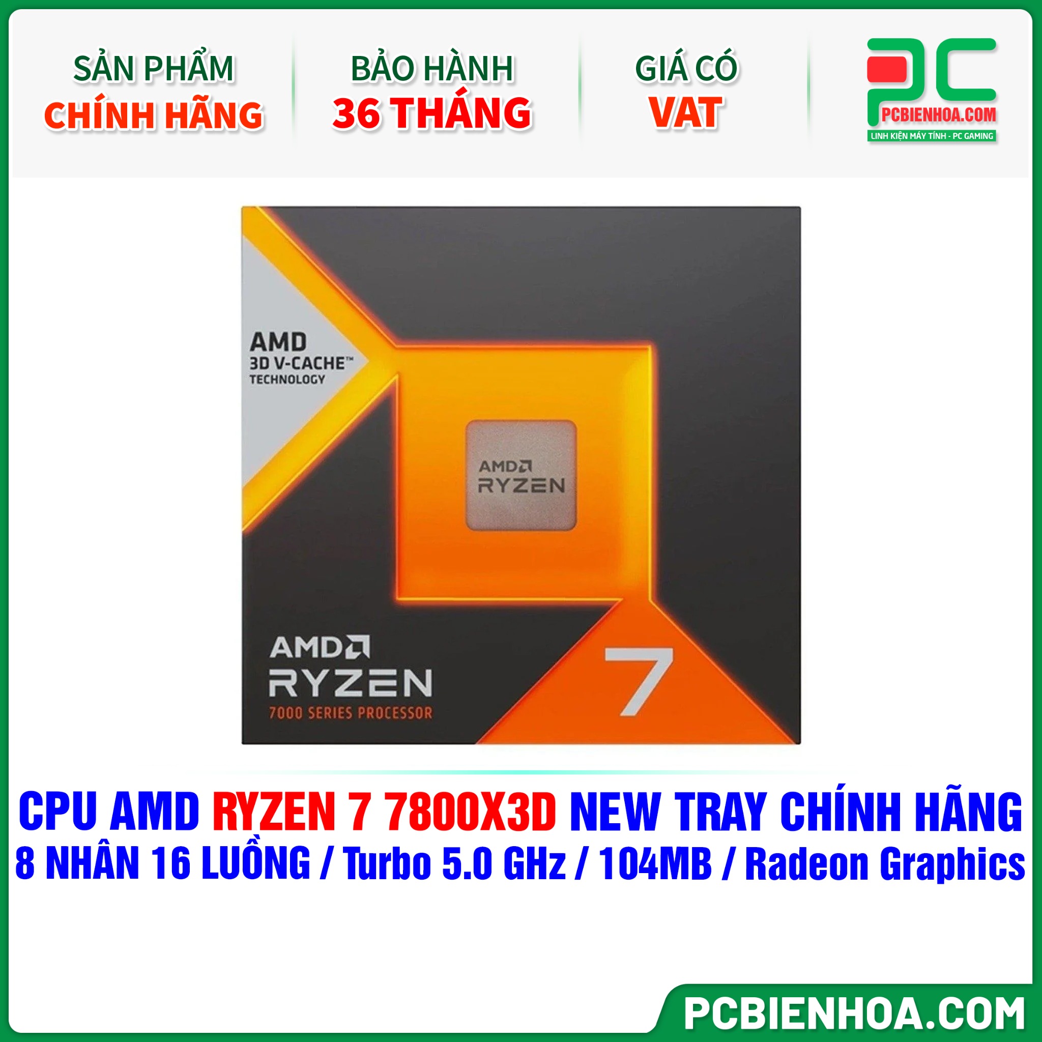 CPU AMD Ryzen 7 7800X3D NEW TRAY CHÍNH HÃNG ( 8 NHÂN 16 LUỒNG / Turbo 5.0 GHz / 104MB / Radeon Graphics )