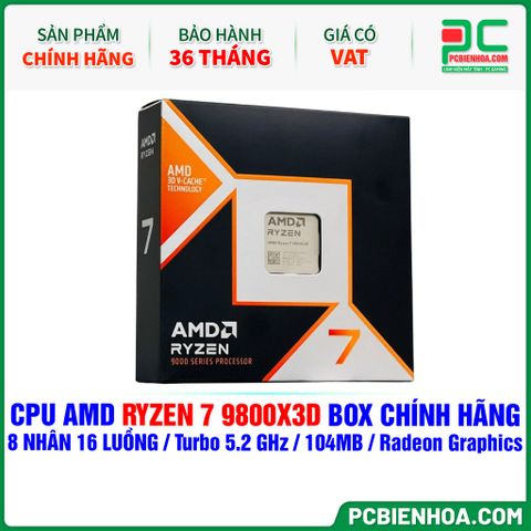 CPU AMD RYZEN 7 9800X3D BOX CHÍNH HÃNG ( 8 NHÂN 16 LUỒNG / Turbo 5.2 GHz / 104MB / Radeon Graphics )