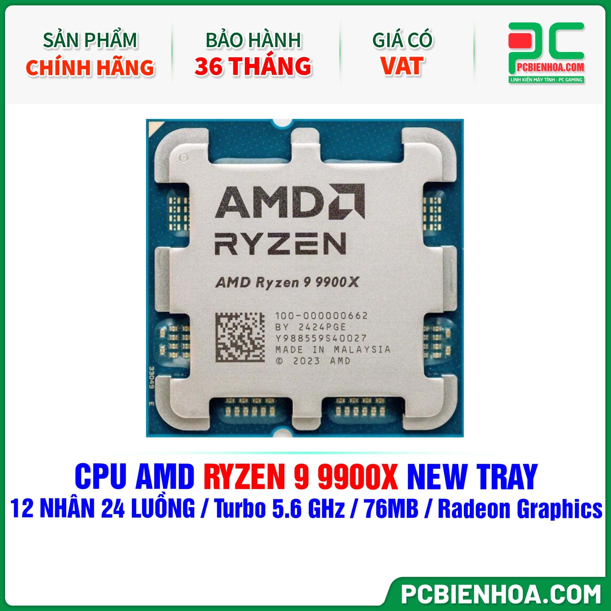 CPU AMD RYZEN 9 9900X NEW TRAY CHÍNH HÃNG ( 12 NHÂN 24 LUỒNG / Turbo 5.6 GHz / 76MB / Radeon Graphics )
