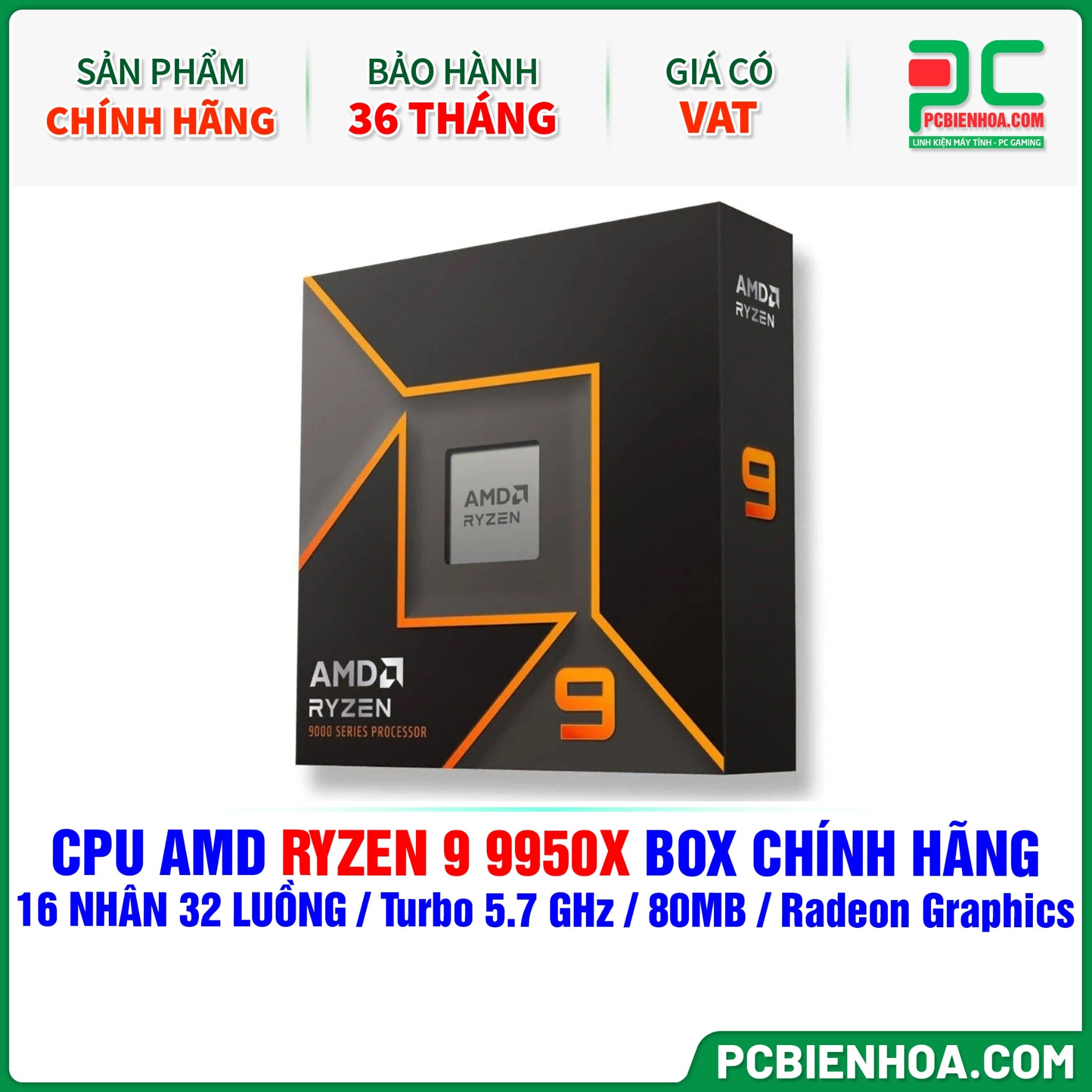 CPU AMD RYZEN 9 9950X BOX CHÍNH HÃNG ( 16 NHÂN 32 LUỒNG / Turbo 5.7 GHz / 80MB / Radeon Graphics )