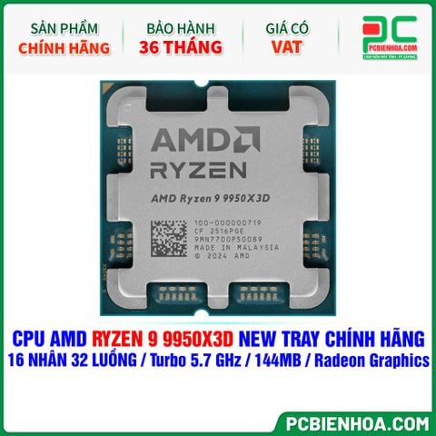 CPU AMD Ryzen 9 9950X3D NEW TRAY CHÍNH HÃNG ( 16 NHÂN 32 LUỒNG / Turbo 5.7 GHz / 144MB / Radeon Graphics )
