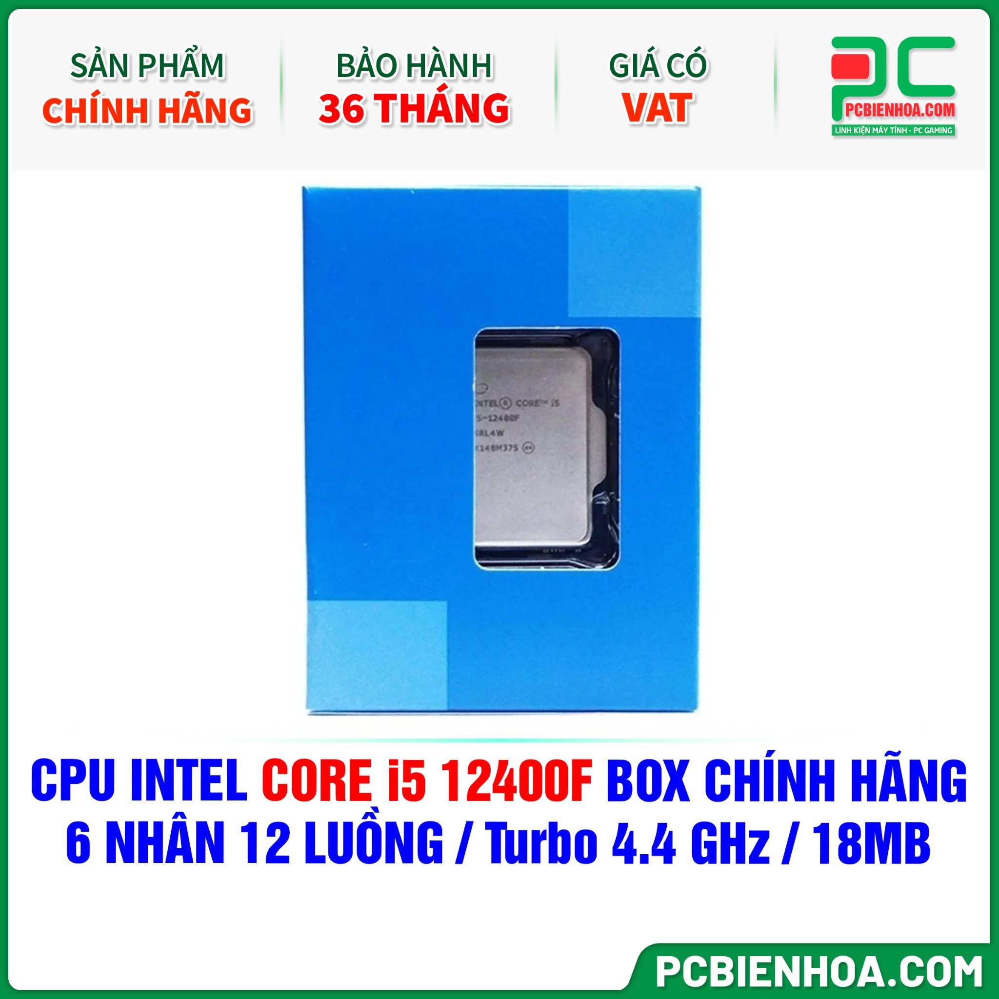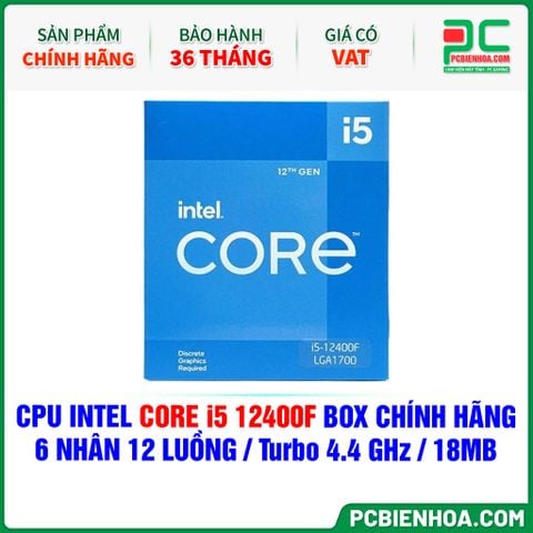 CPU INTEL CORE i5 12400F BOX CHÍNH HÃNG ( 6 NHÂN 12 LUỒNG / Turbo 4.4 GHz / 18MB )