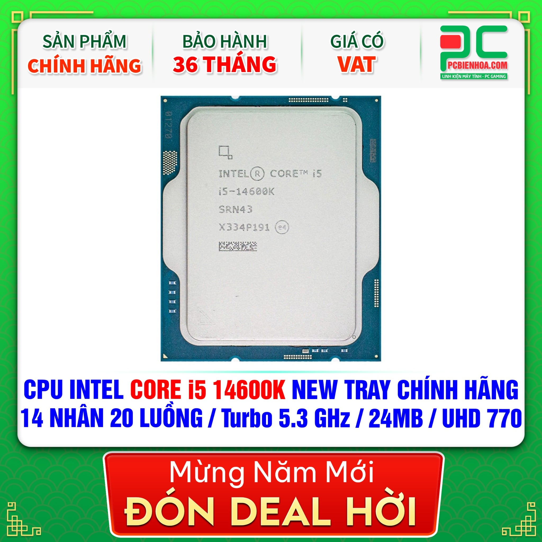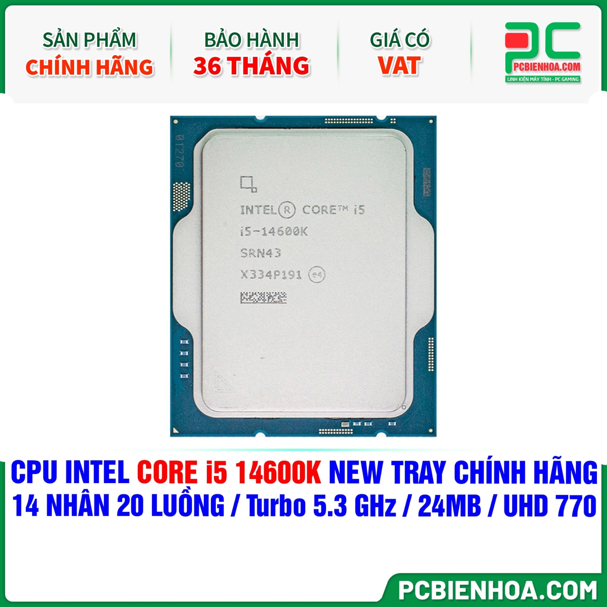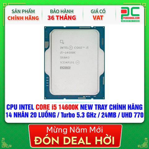 CPU INTEL CORE i5 14600K NEW TRAY CHÍNH HÃNG ( 14 NHÂN 20 LUỒNG / Turbo 5.3 GHz / 24MB / UHD Graphics 770 )