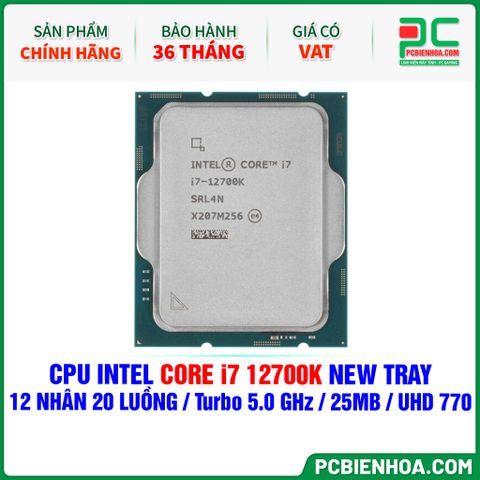 CPU INTEL CORE i7 12700K NEW TRAY CÓ VAT ( 12 NHÂN 20 LUỒNG / Turbo 5.0 GHz / 25MB / UHD GRAPHICS 770 )