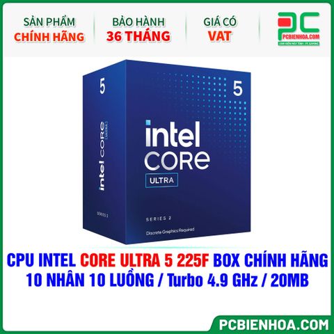 CPU Intel Core Ultra 5 225F BOX CHÍNH HÃNG ( 10 NHÂN 10 LUỒNG / Turbo 4.9 GHz / 20MB )