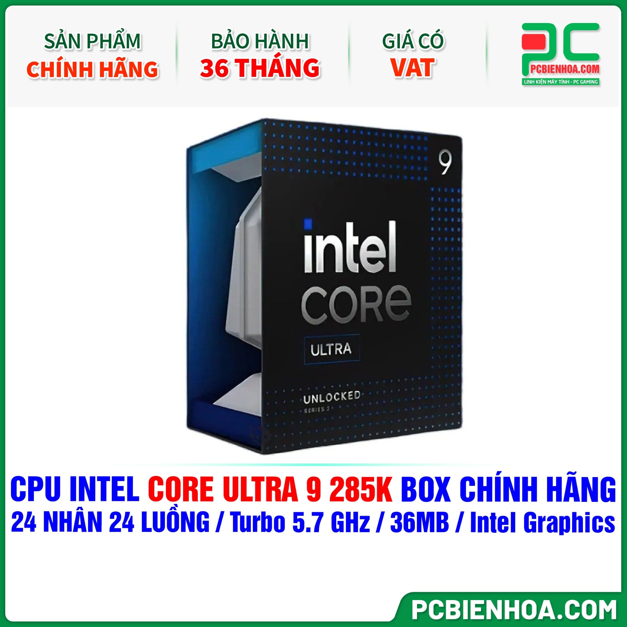 CPU Intel Core Ultra 9 285K BOX CHÍNH HÃNG ( 24 NHÂN 24 LUỒNG / Turbo 5.7 GHz / 36MB / Intel Graphics )
