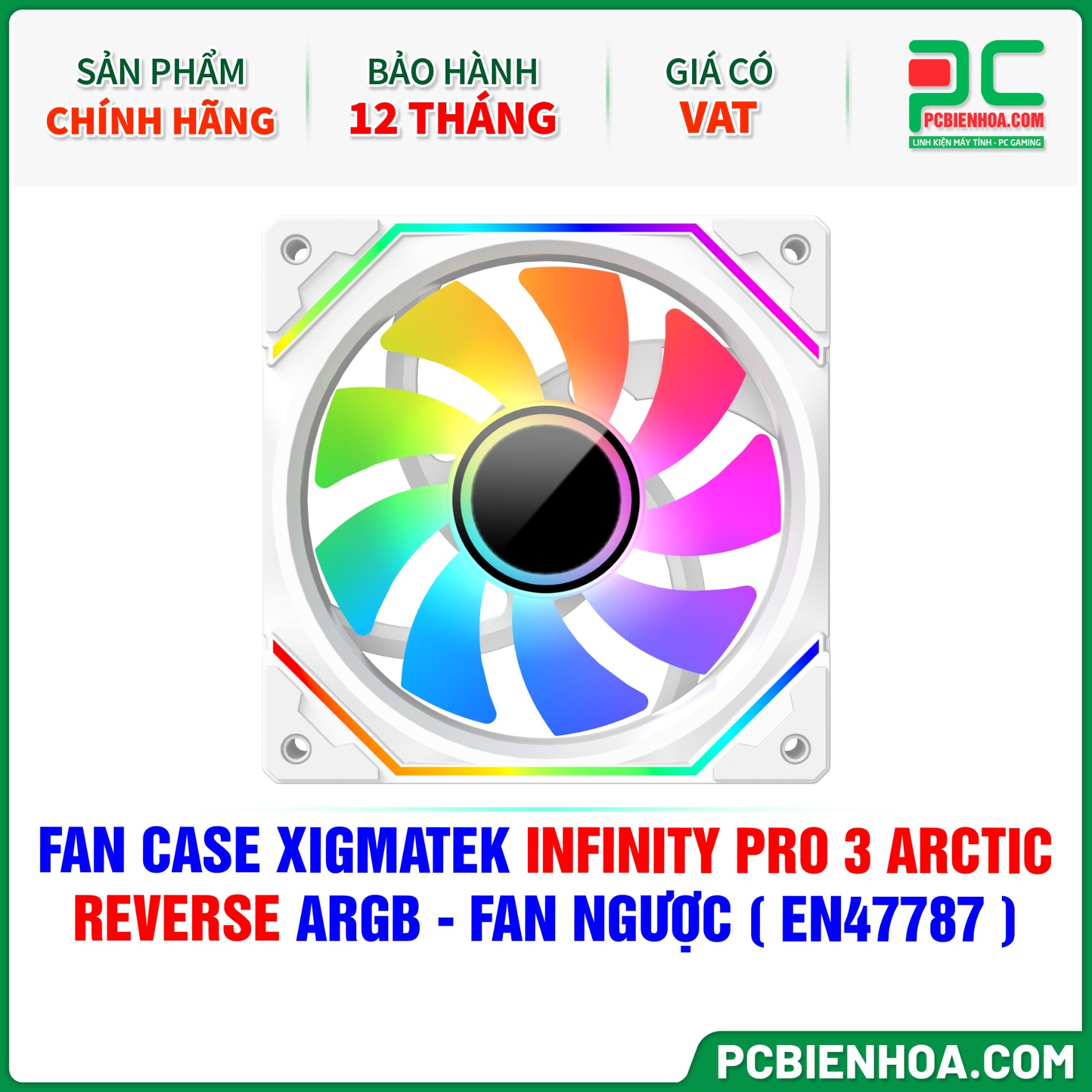 FAN CASE XIGMATEK INFINITY PRO 3 ARCTIC REVERSE ARGB - FAN NGƯỢC ( 120mm / EN47787 )