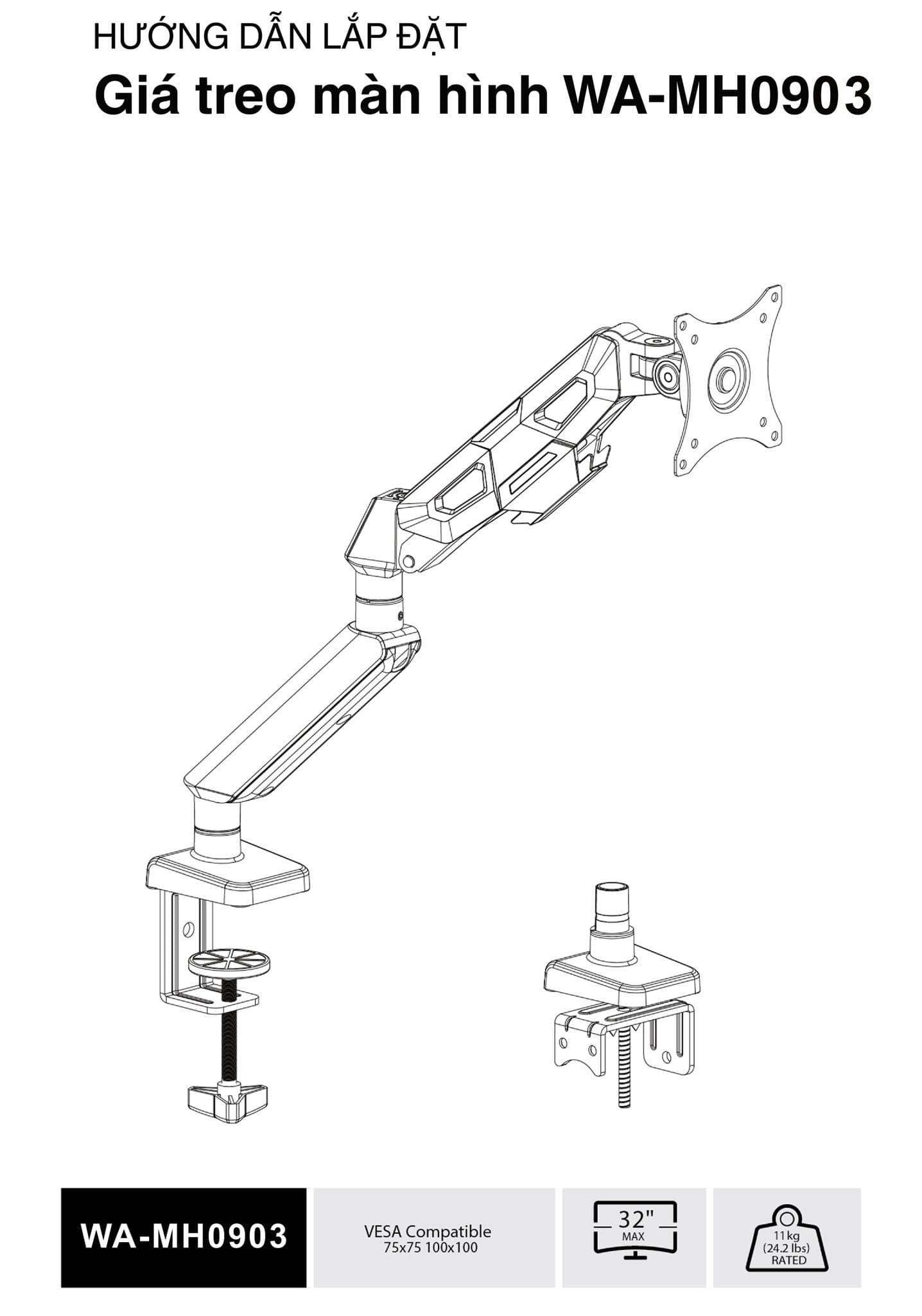 GIÁ ĐỠ MÀN HÌNH ( ARM ) WARRIOR WA-MH0903 WHITE/PINK ( HỖ TRỢ MÀN HÌNH 13 - 32inch / 2~11Kg )