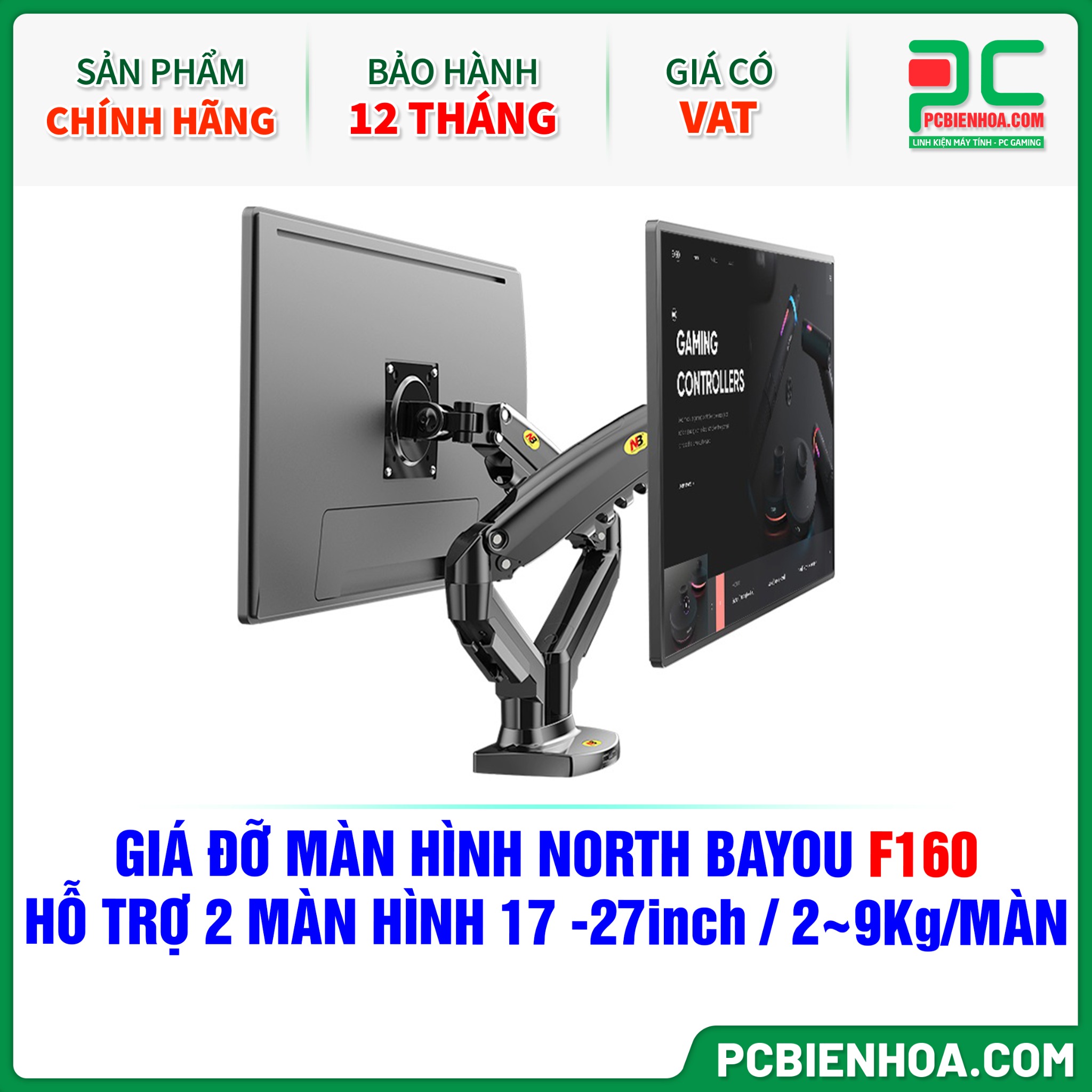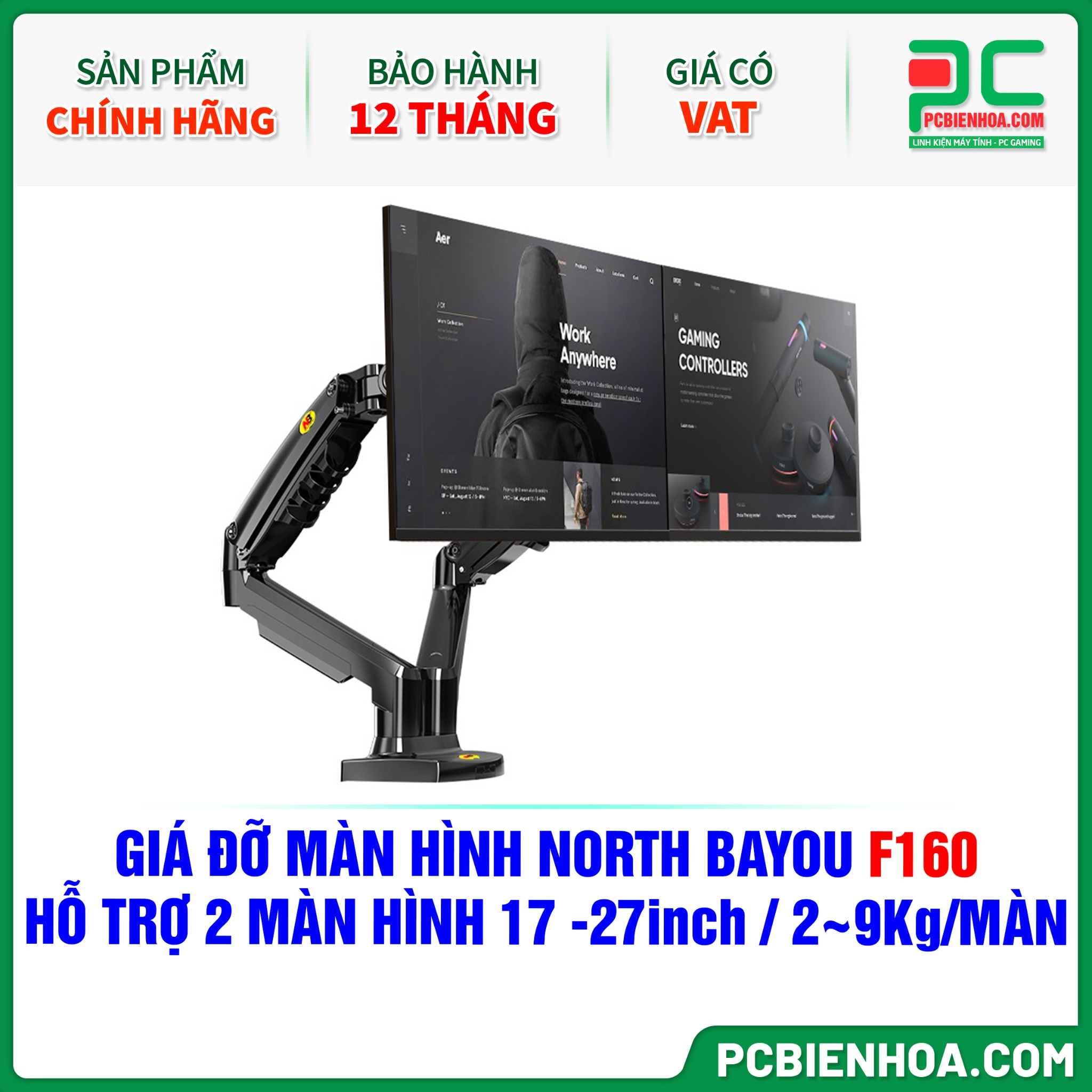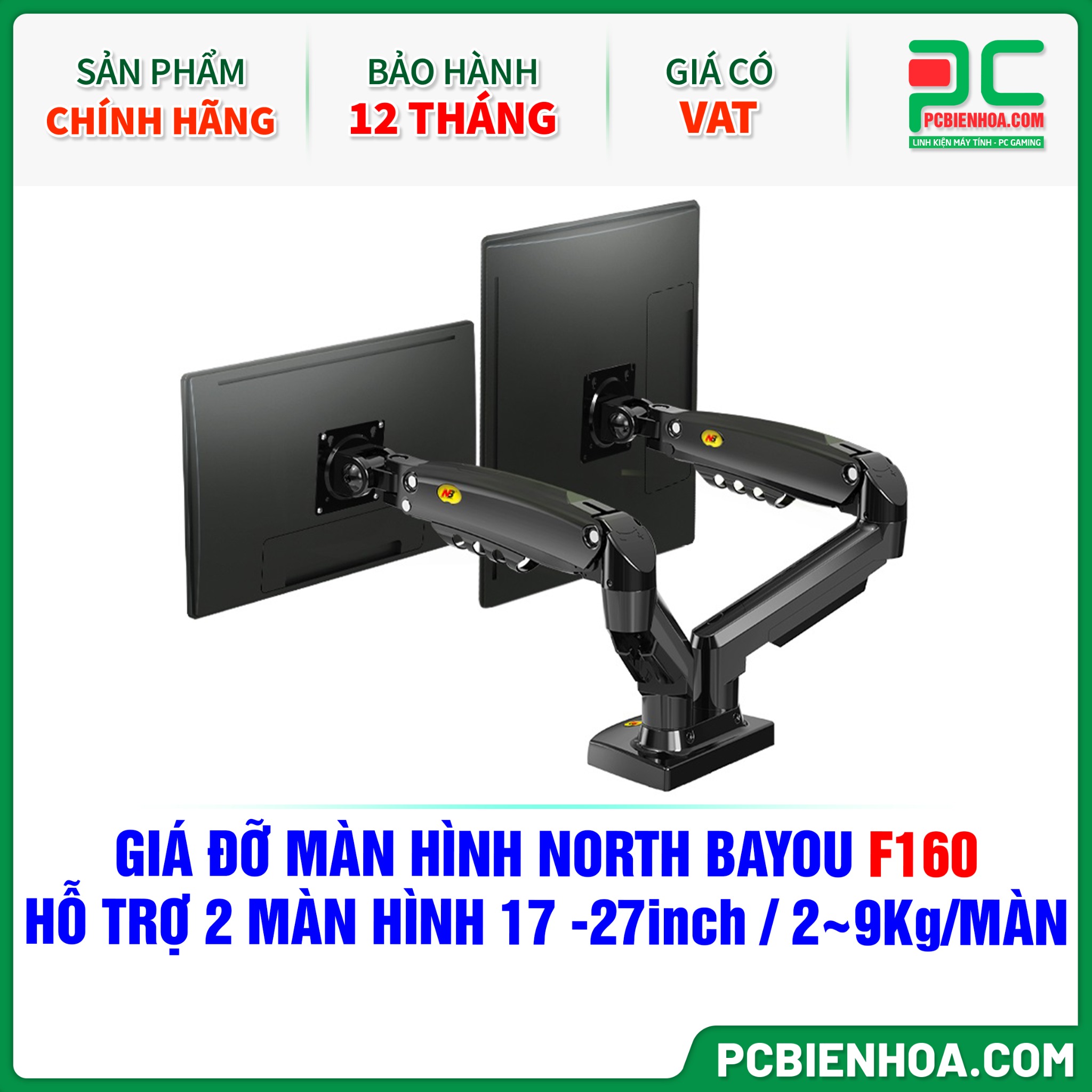 GIÁ ĐỠ MÀN HÌNH NORTH BAYOU F160 ( HỖ TRỢ 2 MÀN HÌNH 17-27inch, 2~9Kg MỖI MÀN HÌNH )