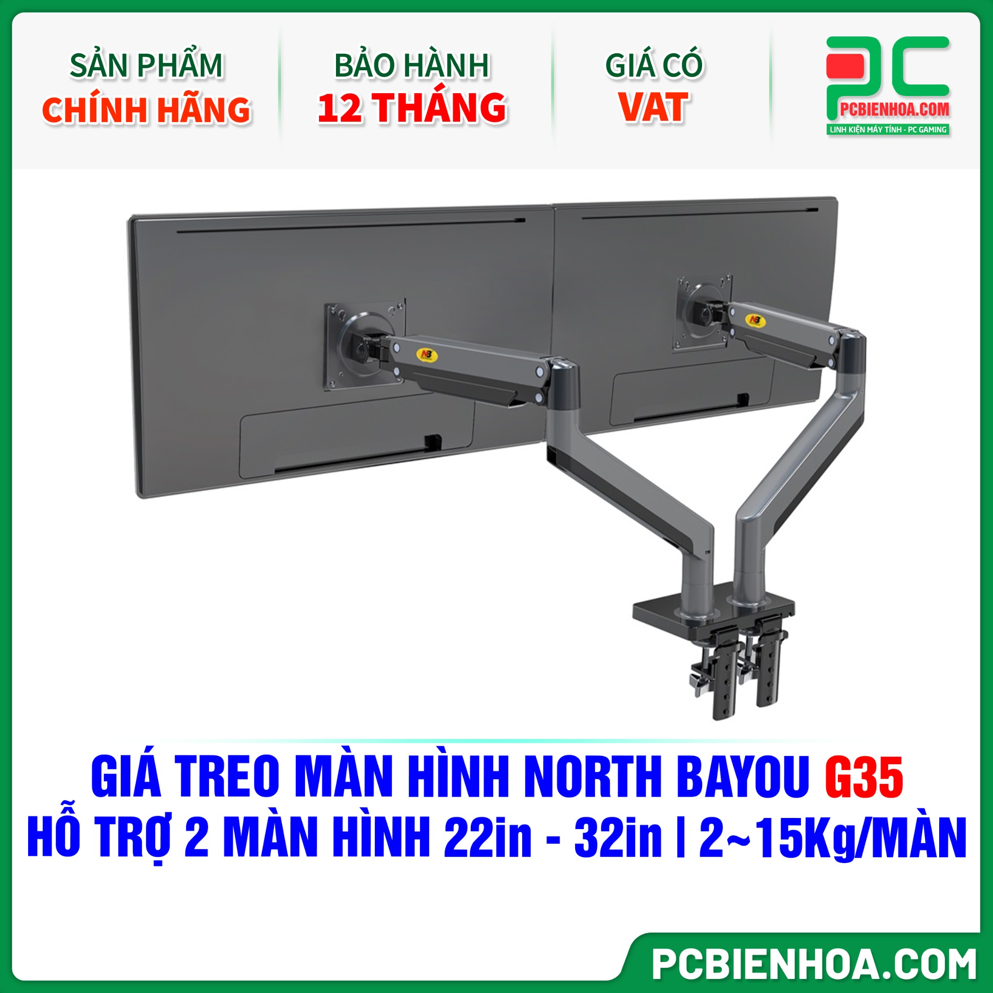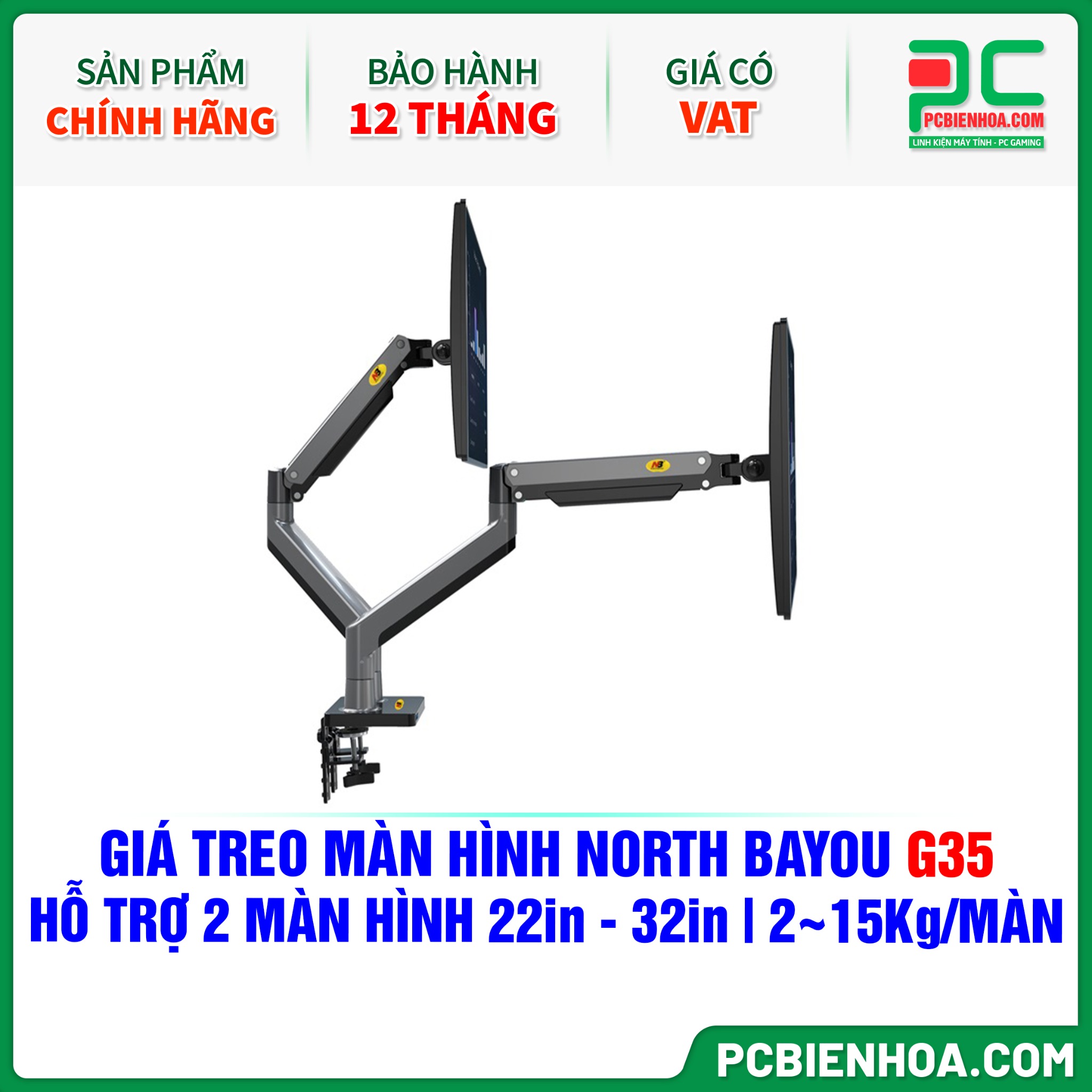 GIÁ TREO MÀN HÌNH ( ARM ) NORTH BAYOU G35 ( HỖ TRỢ 2 MÀN HÌNH 22in - 32in, 2~15Kg MỖI MÀN HÌNH )