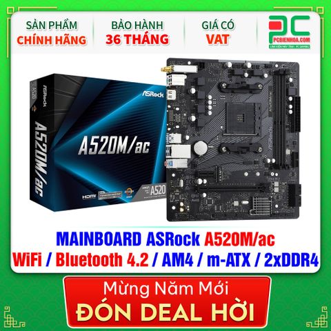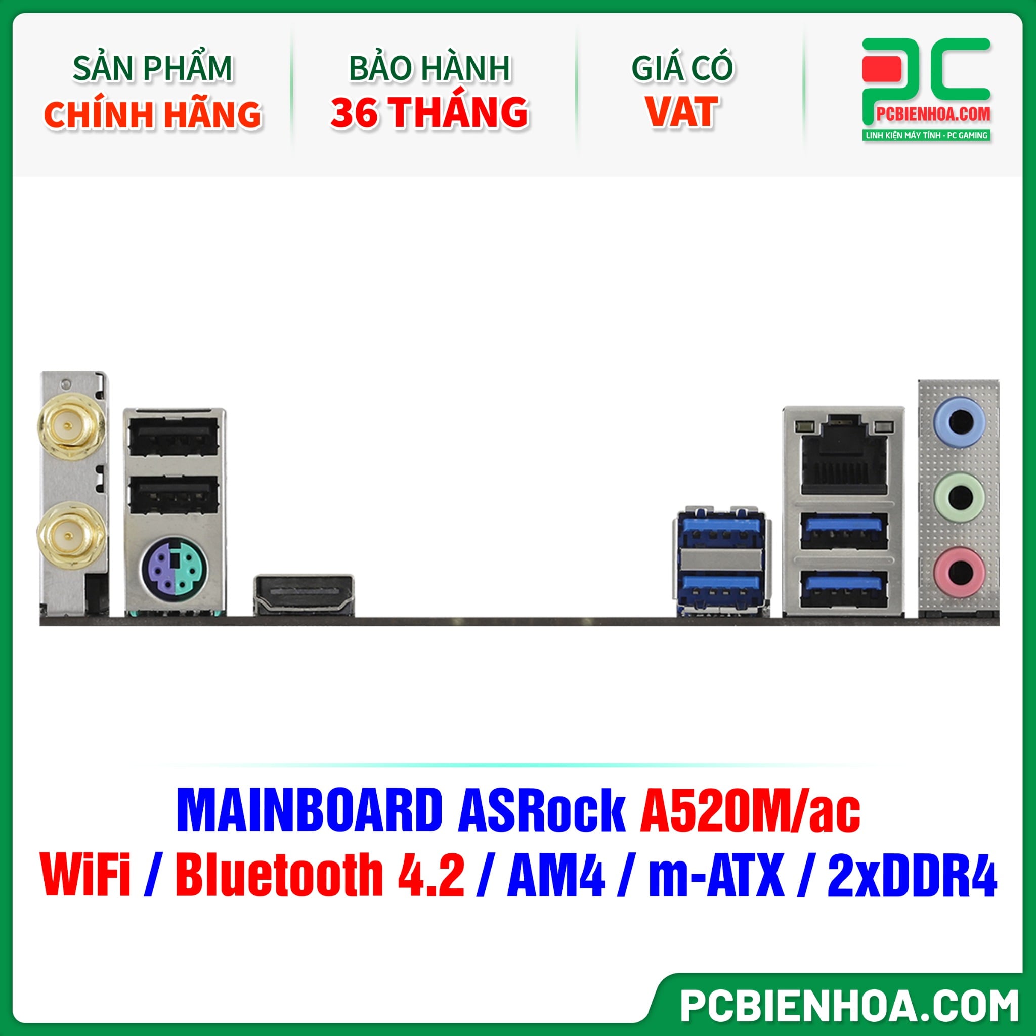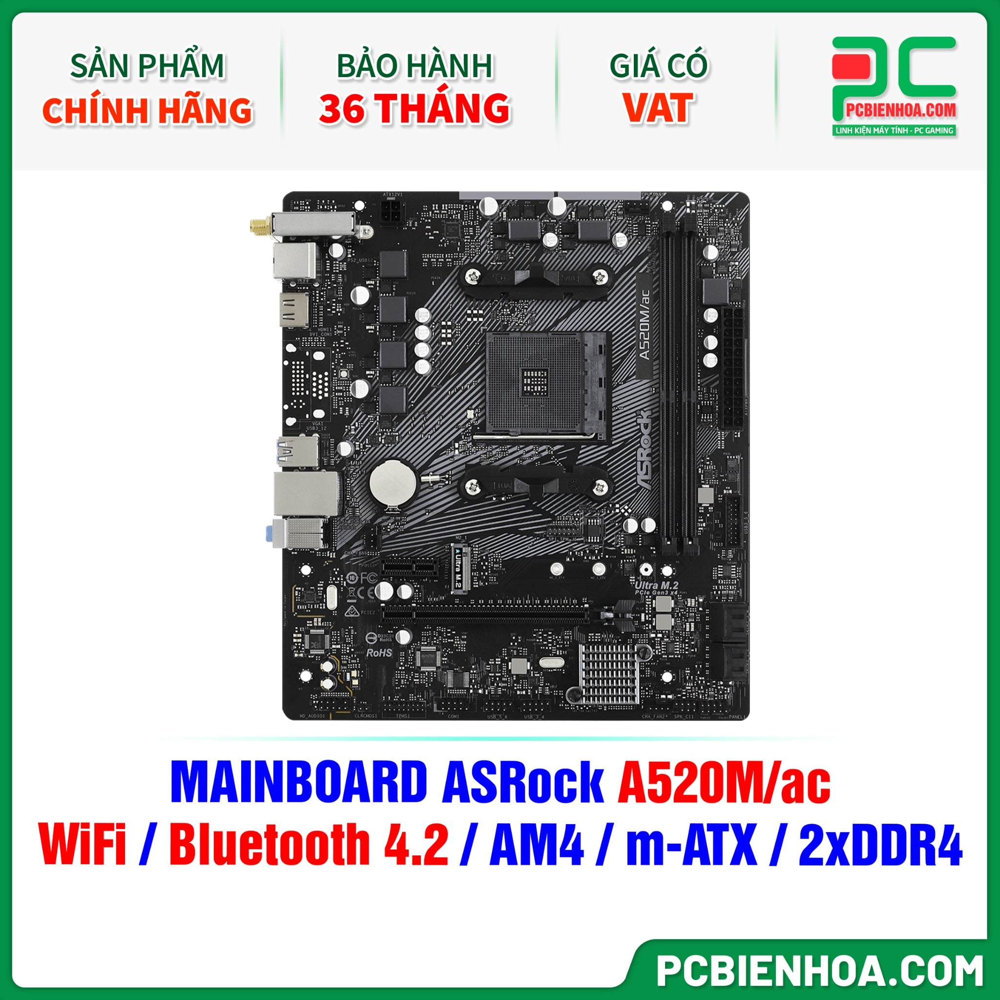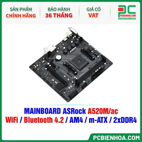 MAINBOARD ASRock A520M/ac ( WiFi / Bluetooth 4.2 / AM4 / m-ATX / 2xDDR4 )