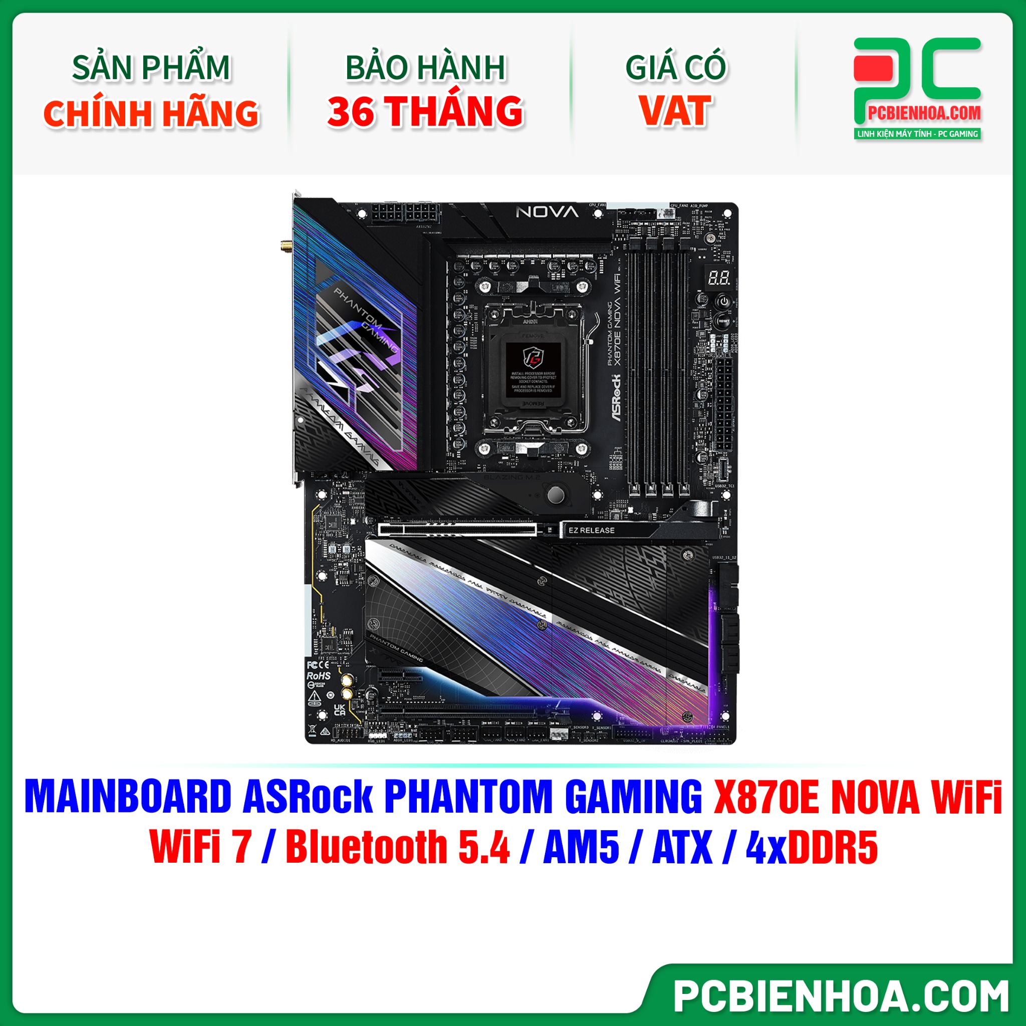 MAINBOARD ASRock PHANTOM GAMING X870E NOVA WiFi ( WiFi 7 / Bluetooth 5.4 / AM5 / ATX / 4xDDR5 )
