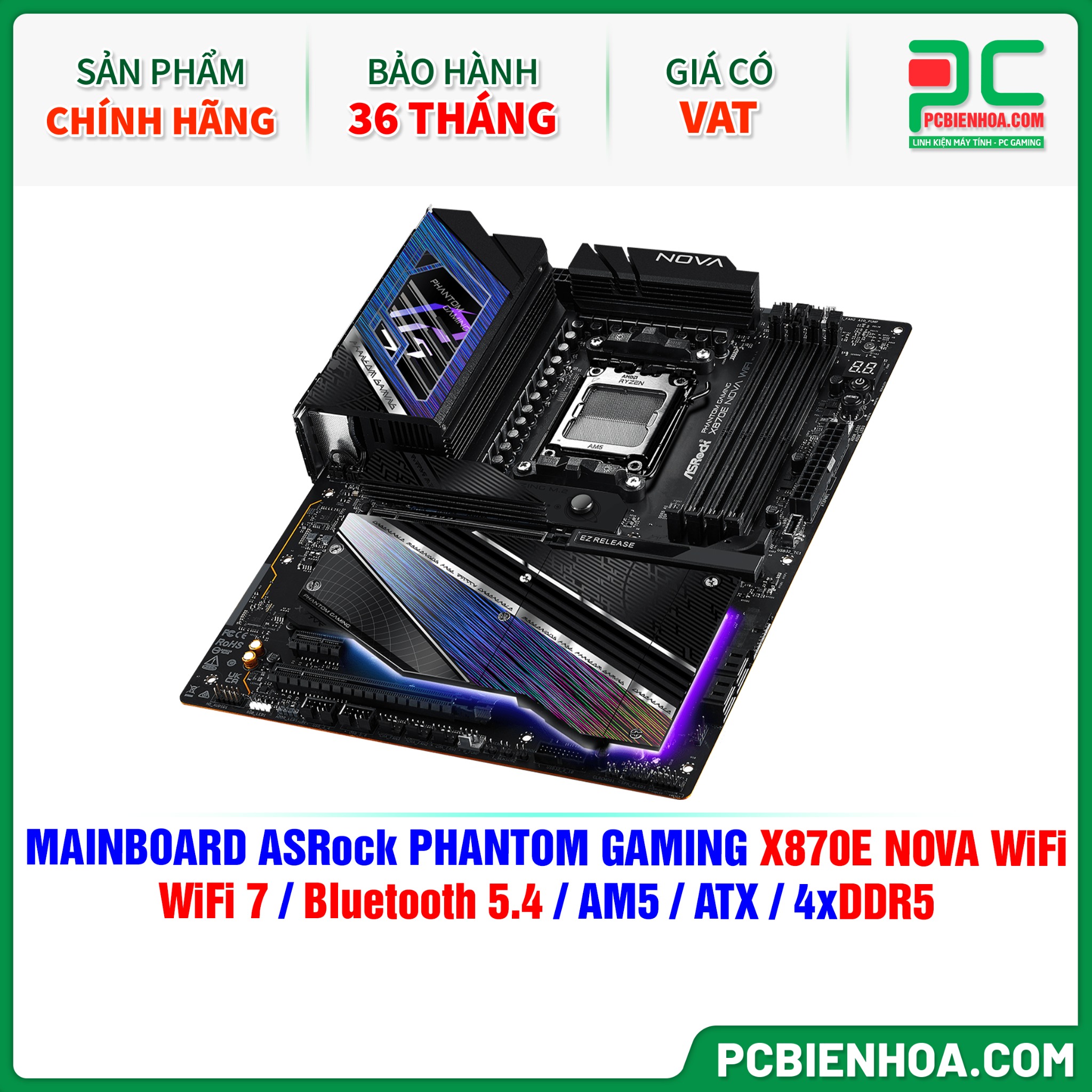 DDR5 - MAINBOARD ASRock PHANTOM GAMING X870E NOVA WiFi ( WiFi 7 / Bluetooth 5.4 / AM5 / ATX / 4xDDR5 )