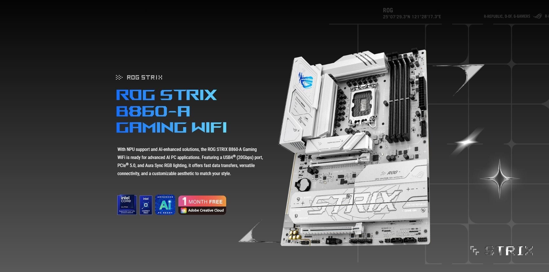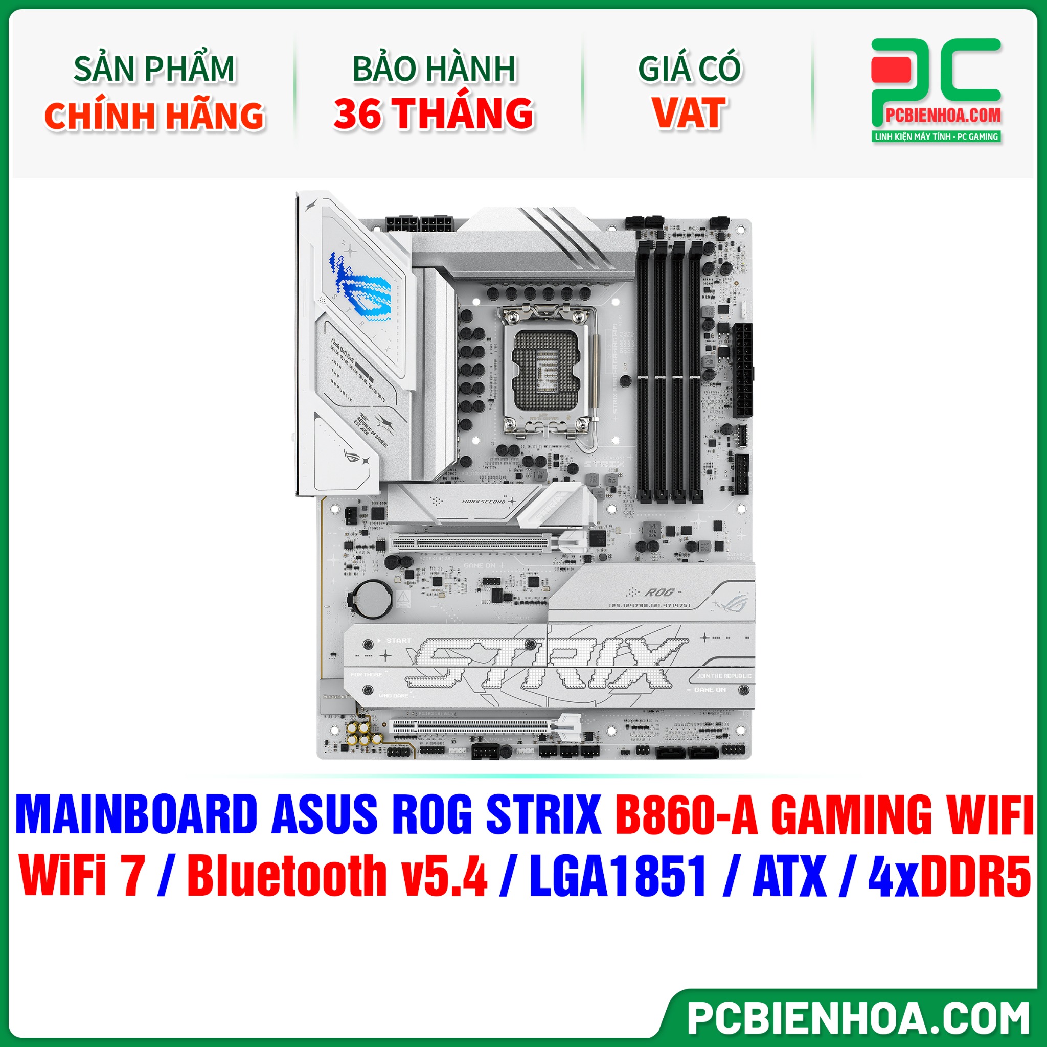 DDR5 - MAINBOARD ASUS ROG STRIX B860-A GAMING WIFI ( WiFi 7 / Bluetooth v5.4 / LGA1851 / ATX / 4xDDR5 )