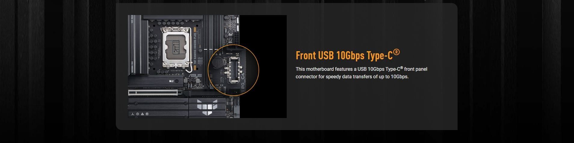 USB | Rear USB (Total 8 ports) 1 x USB 20Gbps port (1 x USB Type-C®) 2 x USB 10Gbps port (2 x Type-A) 4 x USB 5Gbps ports (4 x Type-A) 1 x USB 2.0 ports (1 x Type-A) Front USB (Total 8 ports) 1 x USB 10Gbps connector (supports USB Type-C®) 1 x USB 5Gbps header supports 2 additional USB 5Gbps ports 1 x USB 2.0 headers support 2 additional USB 2.0 ports * USB Type-C® power delivery output: max. 5V/3A |