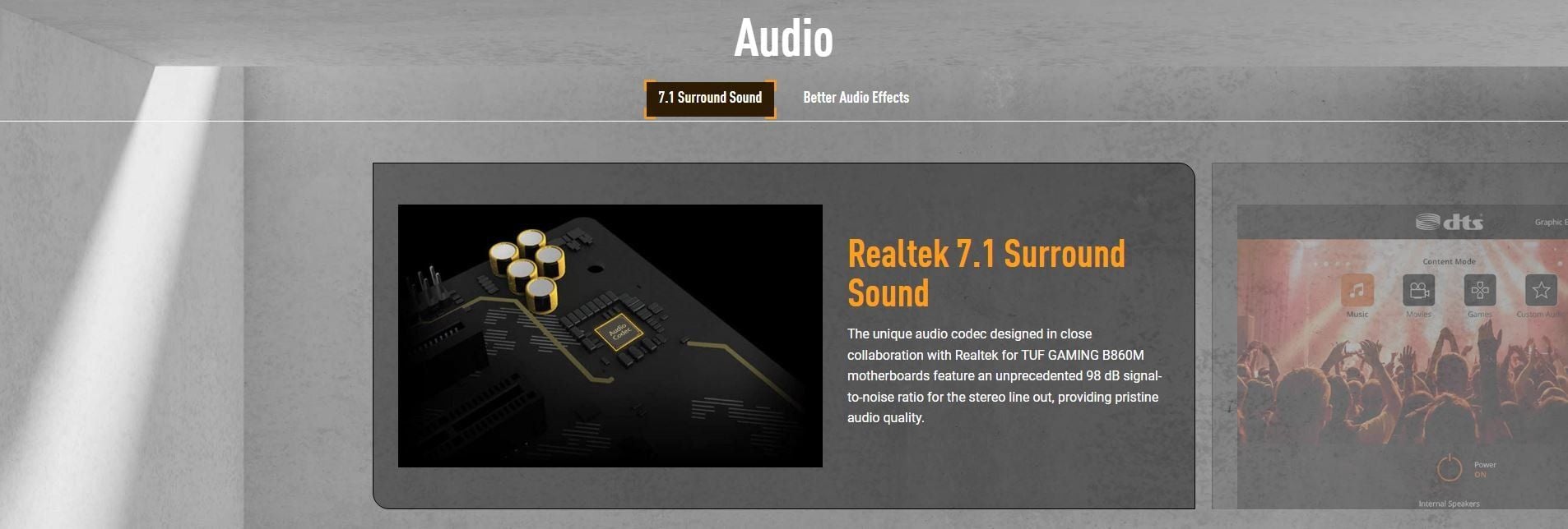 Audio | Realtek 7.1 Surround Sound High Definition Audio CODEC - Supports: Jack-detection, Multi-streaming, Front Panel Jack-retasking - Supports up to 24-Bit/192 kHz playback Audio Features - Audio Shielding - Rear optical S/PDIF out port - Premium audio capacitors - Dedicated audio PCB layers |