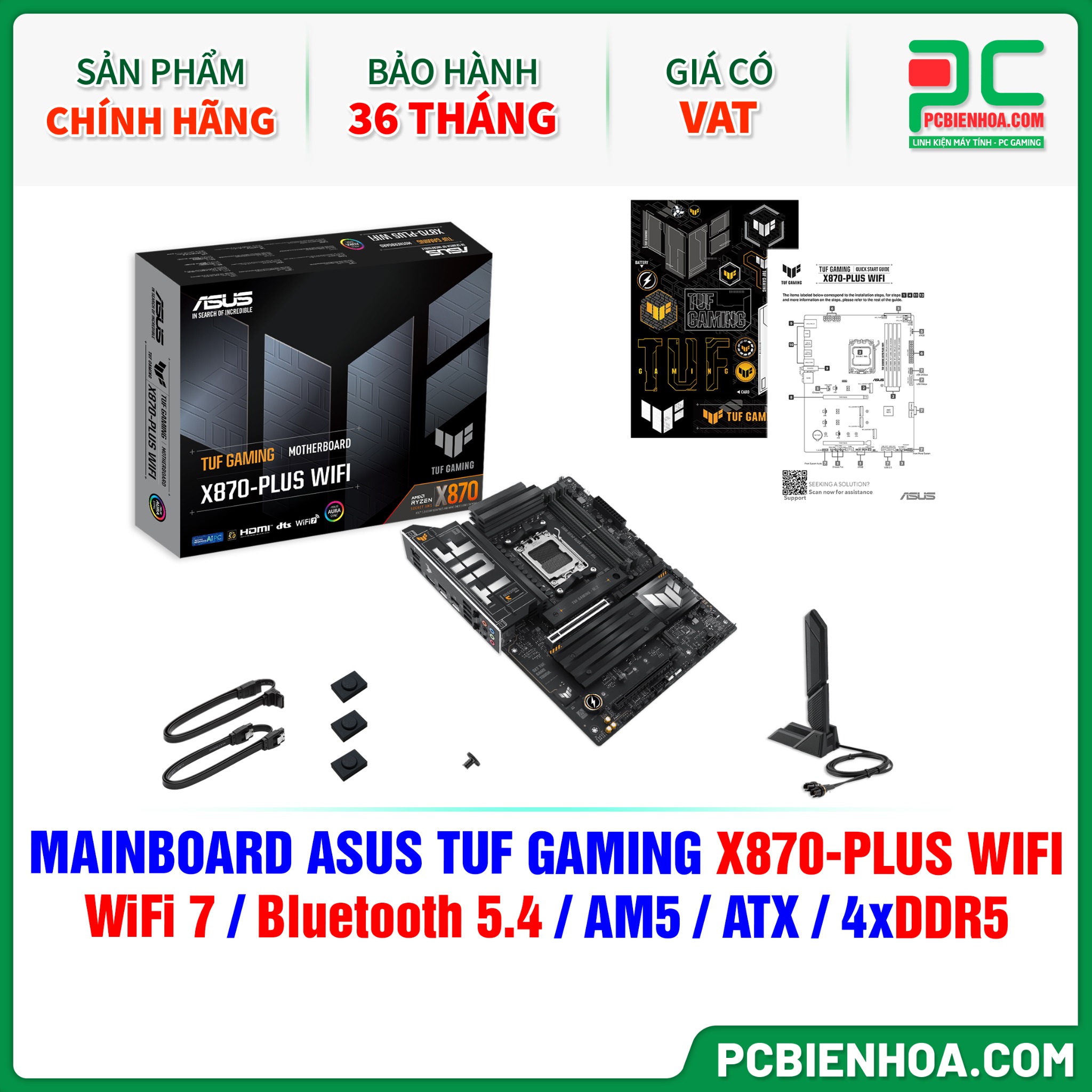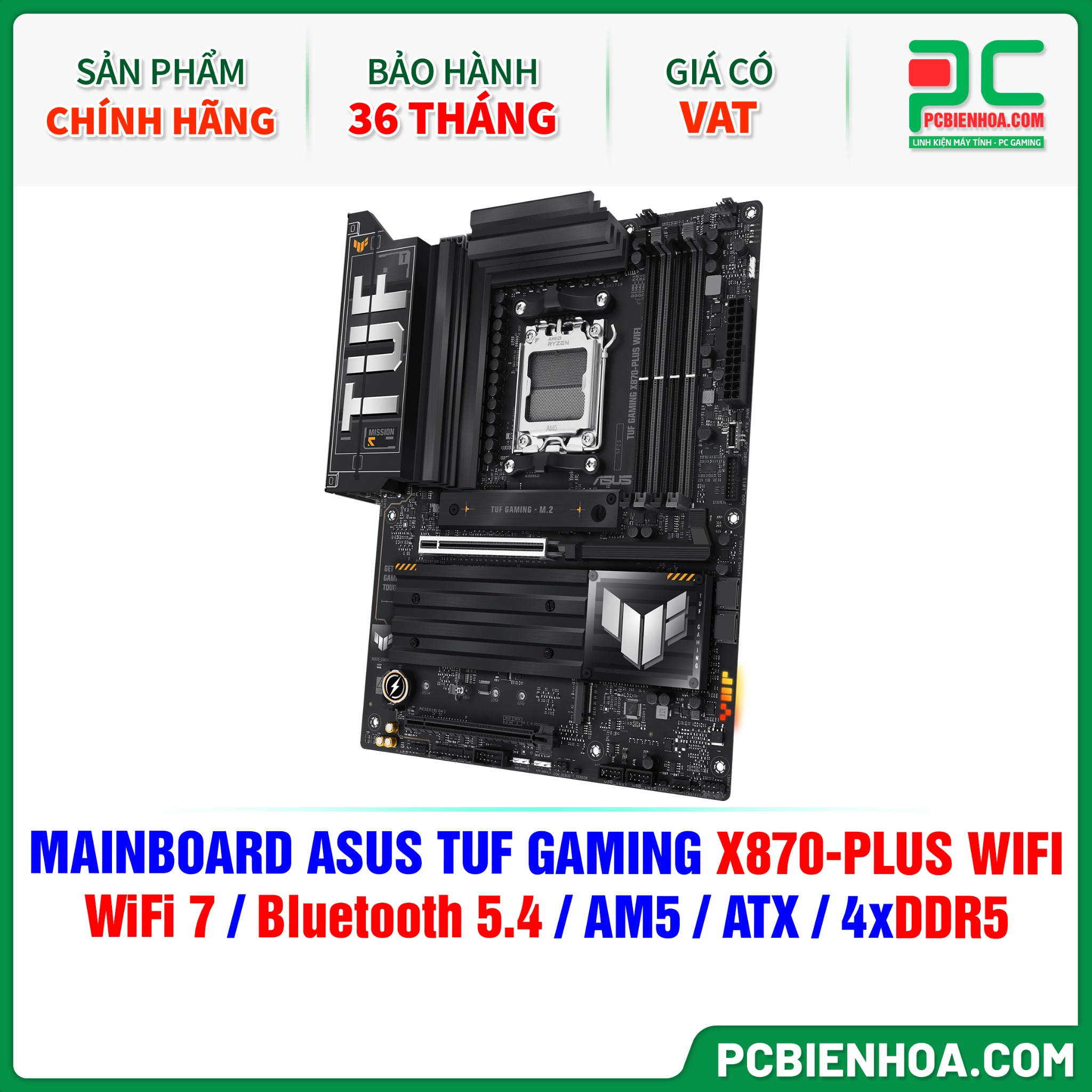 DDR5 - MAINBOARD ASUS TUF GAMING X870-PLUS WIFI ( WiFi 7 / Bluetooth 5.4 / AM5 / ATX / 4xDDR5 )