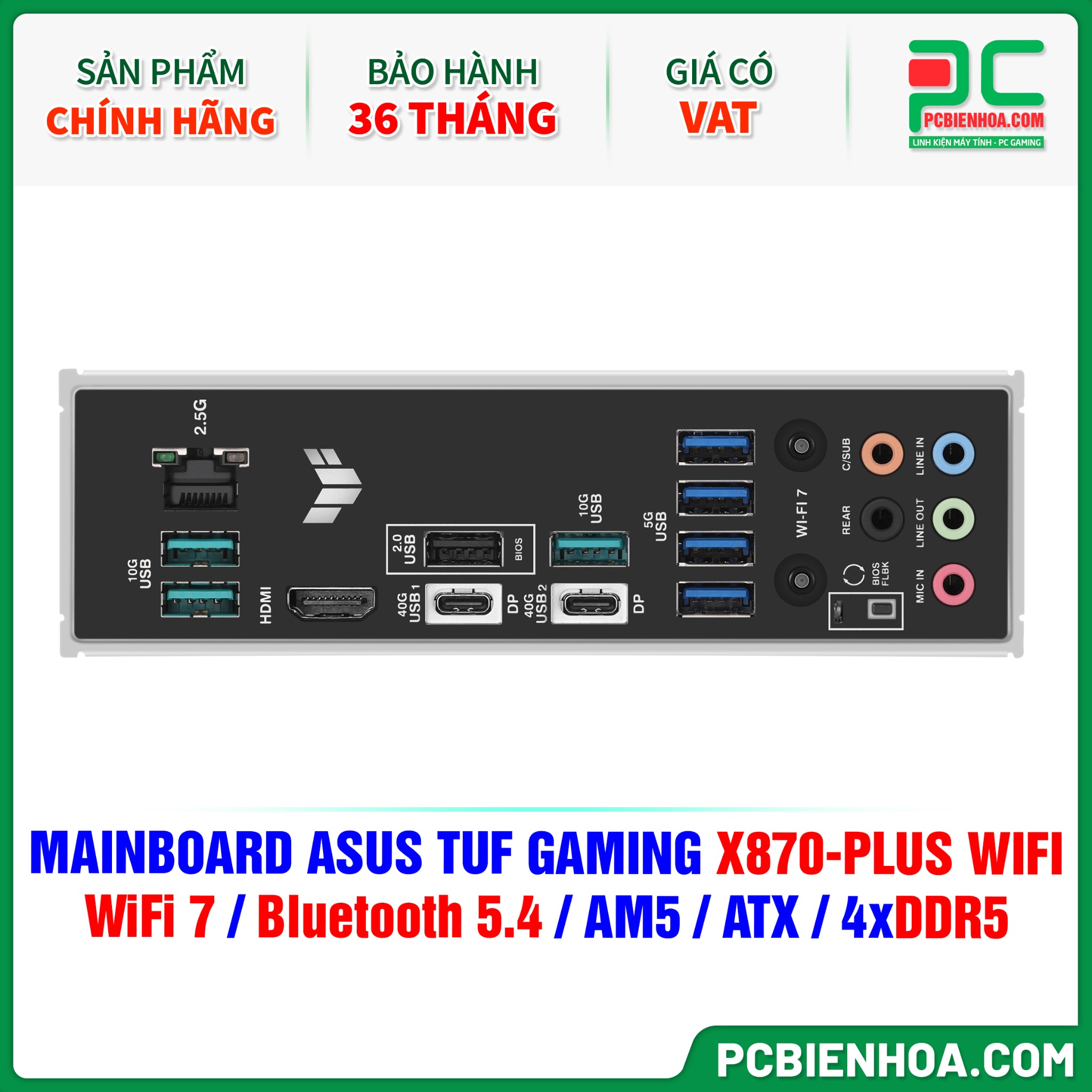 MAINBOARD ASUS TUF GAMING X870-PLUS WIFI ( WiFi 7 / Bluetooth 5.4 / AM5 / ATX / 4xDDR5 )