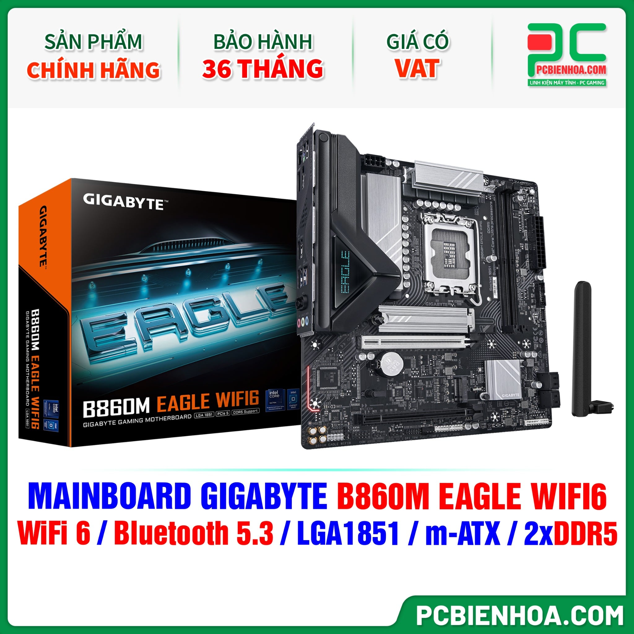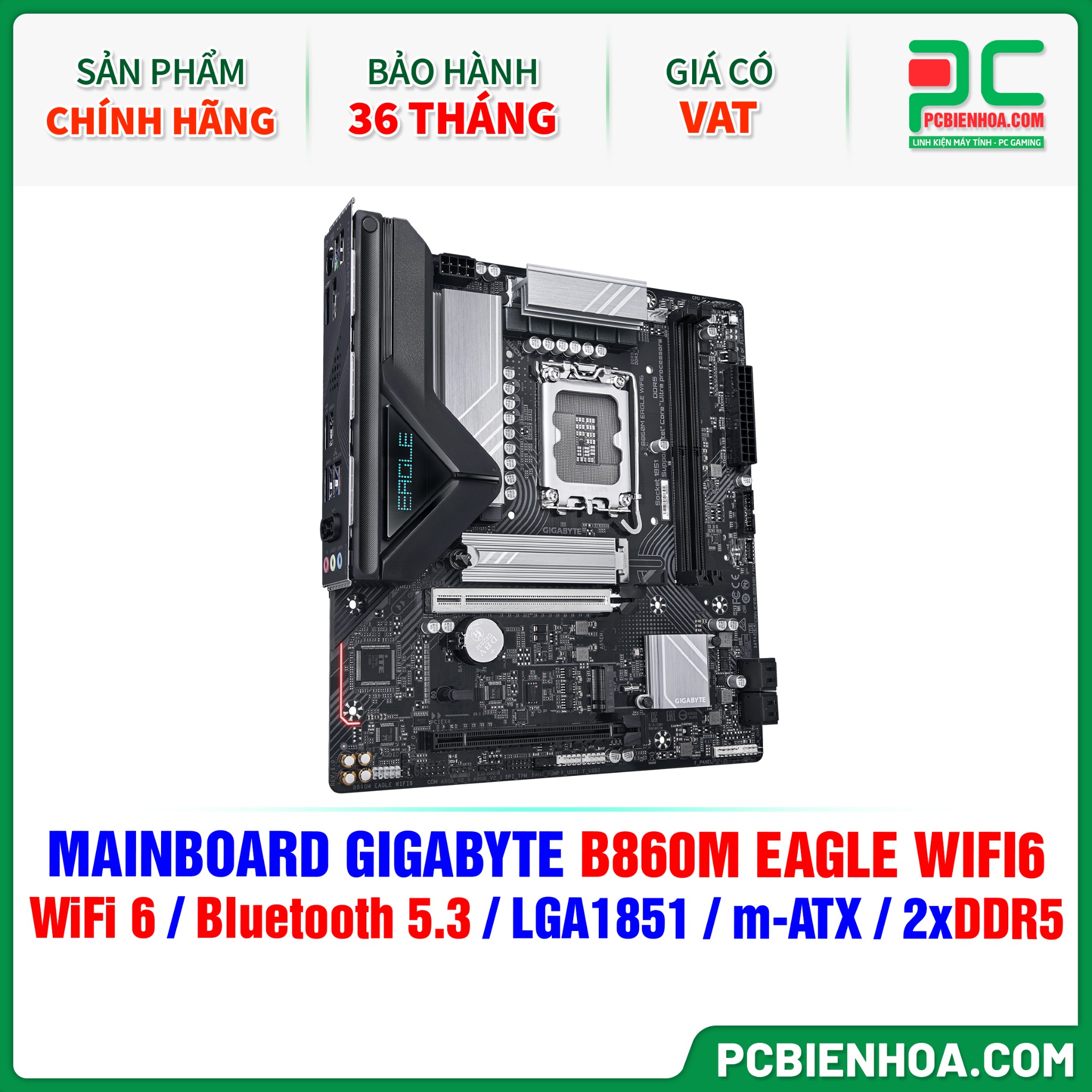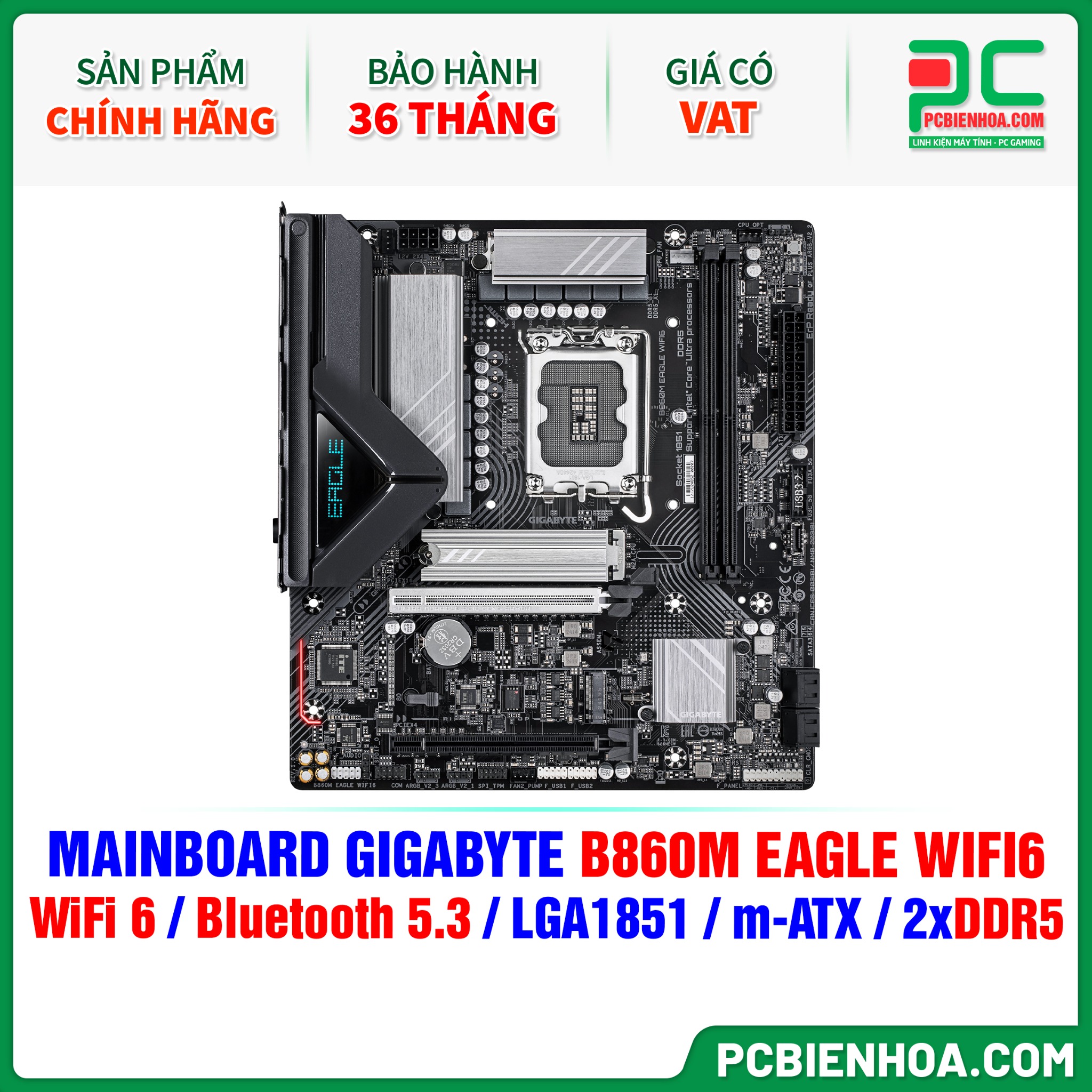DDR5 - MAINBOARD GIGABYTE B860M EAGLE WIFI6 ( WiFi 6 / Bluetooth 5.3 / LGA1851 / m-ATX / 2xDDR5 )