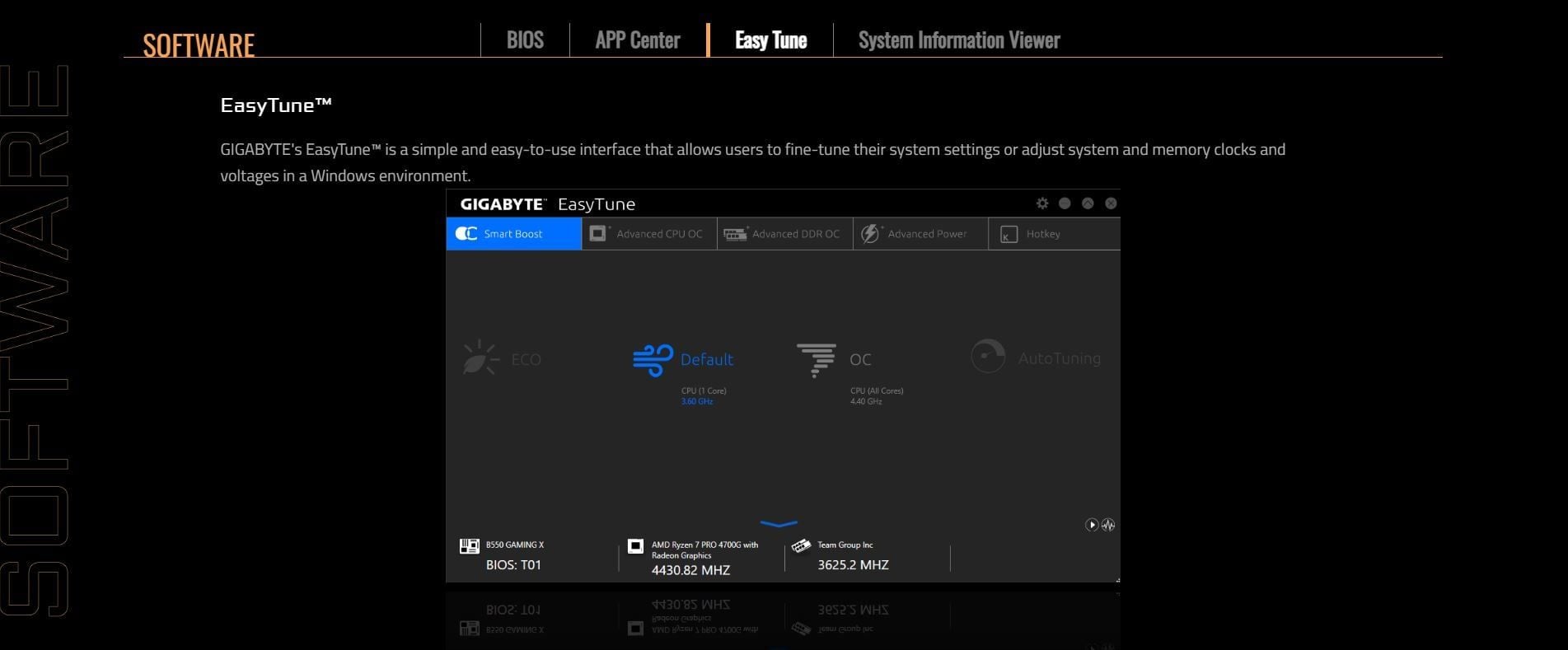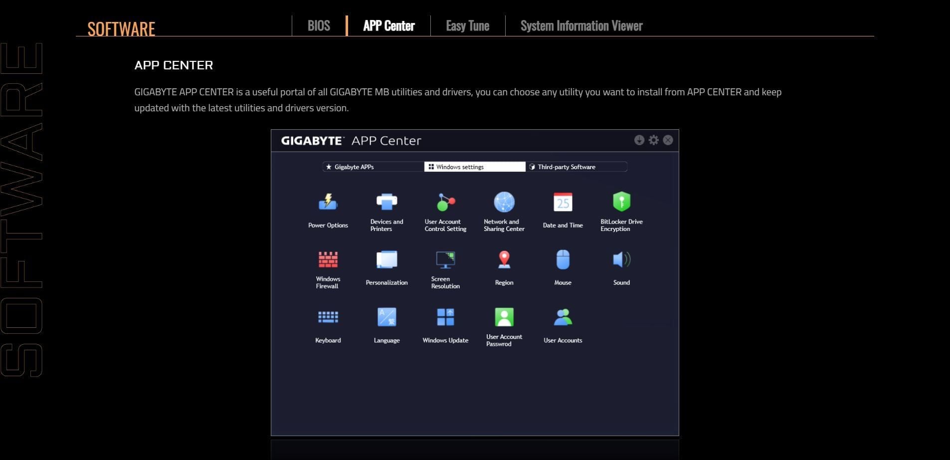 Unique Features | Support for APP Center * Available applications in APP Center may vary by motherboard model. Supported functions of each application may also vary depending on motherboard specifications. @BIOS EasyTune Smart Backup System Information Viewer Support for Q-Flash |
