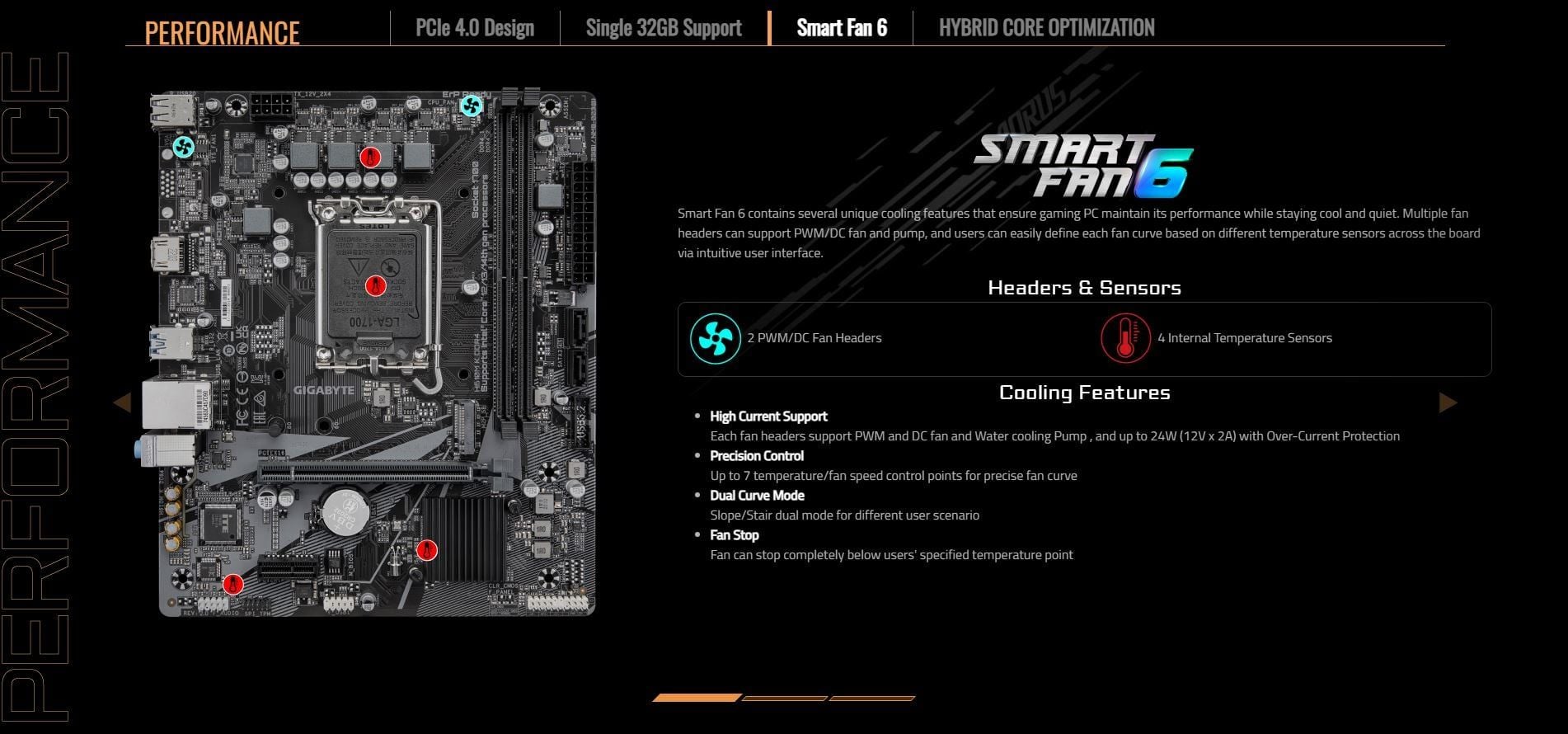H/W Monitoring | Voltage detection Temperature detection Fan speed detection Water cooling flow rate detection Fan fail warning Fan speed control * Whether the fan speed control function is supported will depend on the fan you install |