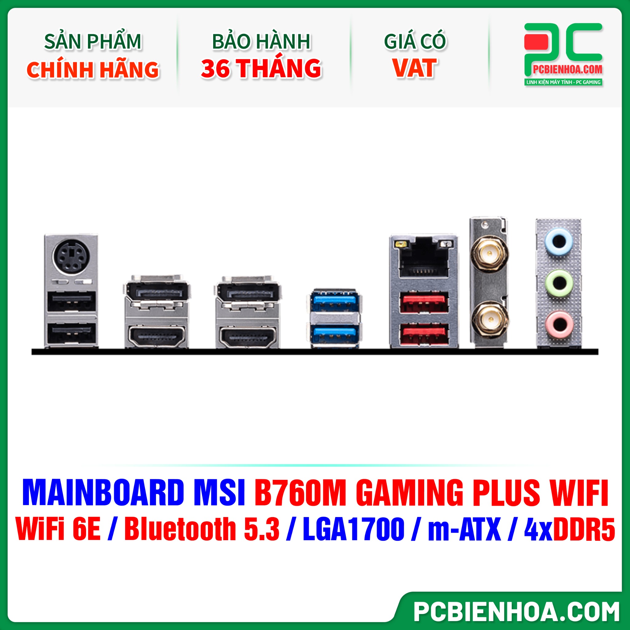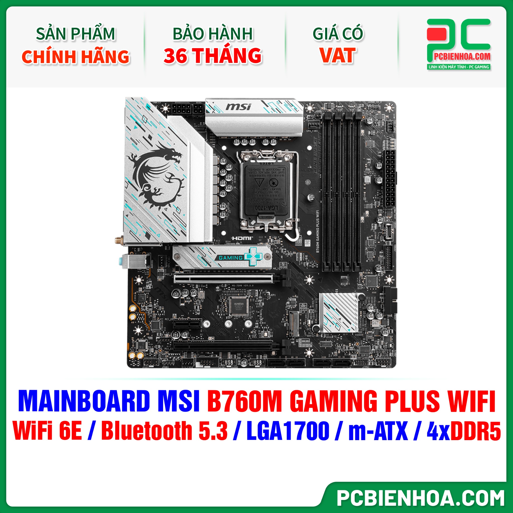 DDR5 - MAINBOARD MSI B760M GAMING PLUS WIFI ( WiFi 6E / Bluetooth 5.3 / LGA1700 / m-ATX / 4xDDR5 )