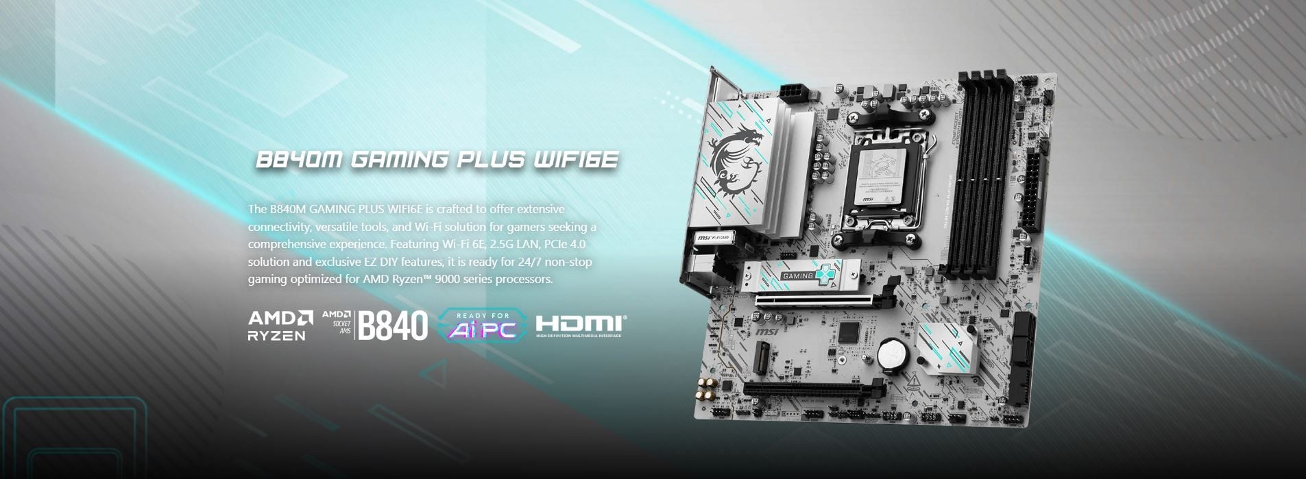 MAINBOARD MSI B840M GAMING PLUS WIFI6E ( WiFi 6E / Bluetooth 5.3 / AM5 / m-ATX / 4xDDR5 )