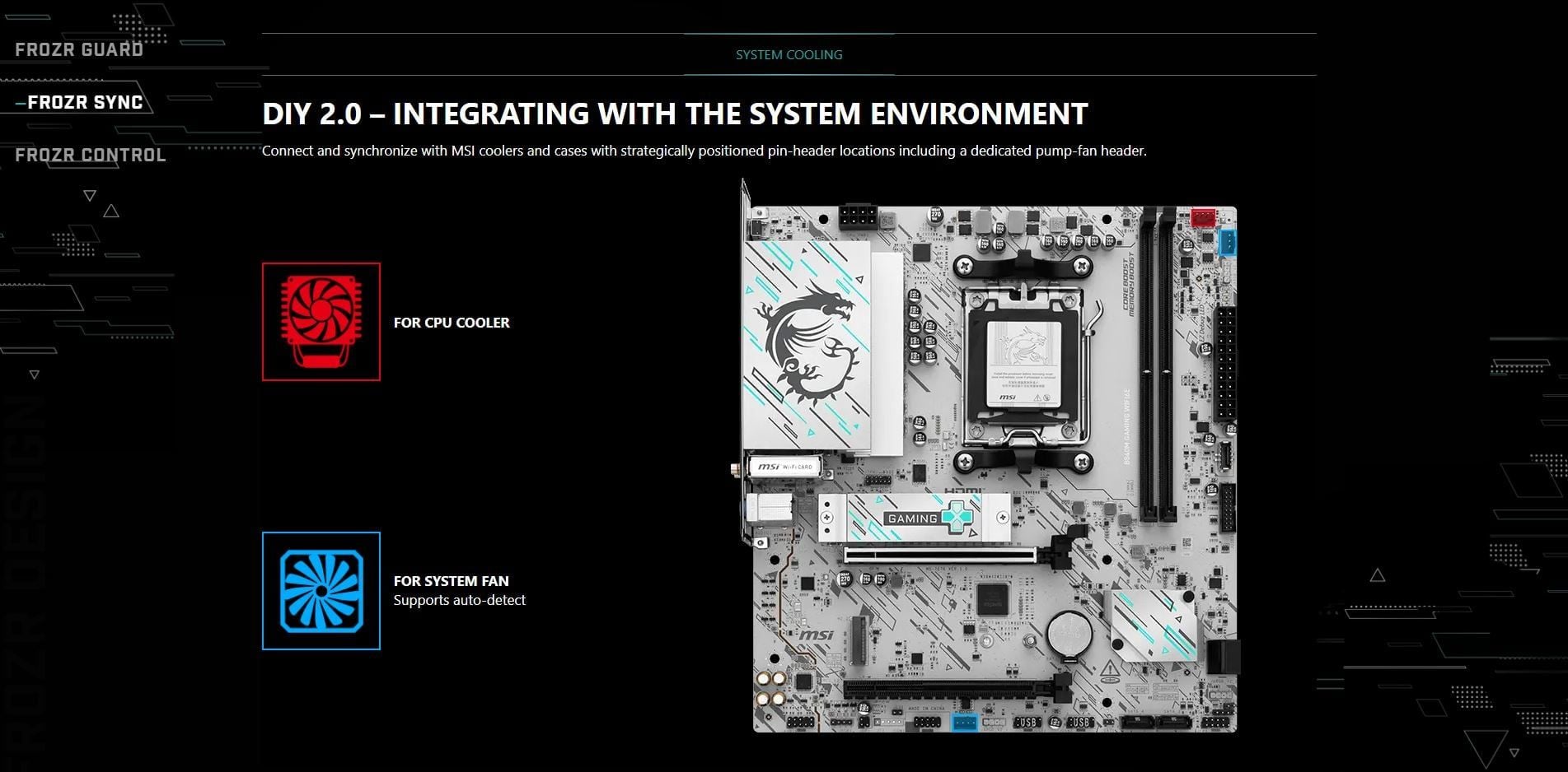 MEMORY | 2x DDR5 UDIMM, Maximum Memory Capacity 128GB Memory Support DDR5 8000 - 5600 (OC) MT/s / 5600 - 4800 (JEDEC) MT/s Ryzen™ 9000 Series Processors max. overclocking frequency: • 1DPC 1R Max speed up to 8000+ MT/s • 1DPC 2R Max speed up to 7200+ MT/s Supports AMD POR Speed and JEDEC Speed Supports Memory Overclocking and AMD EXPOTM Supports Dual-Channel mode Supports Non-ECC, Un-buffered memory Supports CUDIMM, Clock Driver bypass mode only* * CUDIMM support and POR boot frequency may vary by CPU series, with manual overclocking available after boot. Certain CPUs may fail to boot, but future BIOS updates will improve compatibility. • Memory compatibility and supported speeds can vary depending on the CPU and memory configuration. For detailed information, please refer to the Memory Compatibility List available on the product’s Support page or visit https://www.msi.com/support/. | |