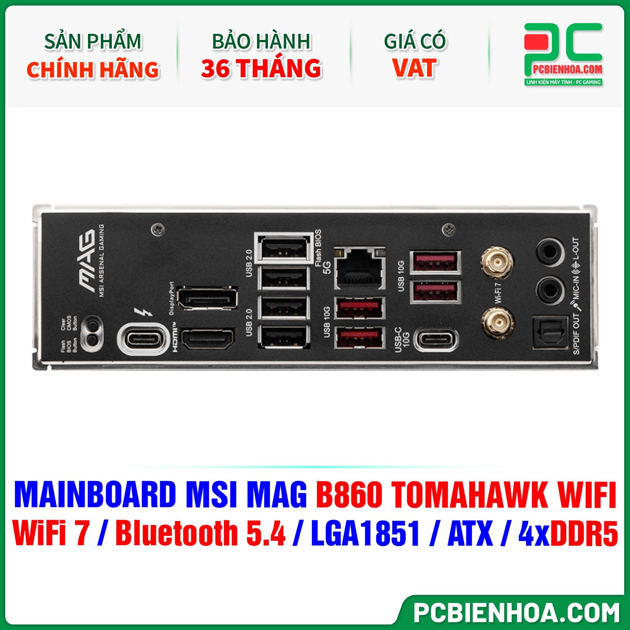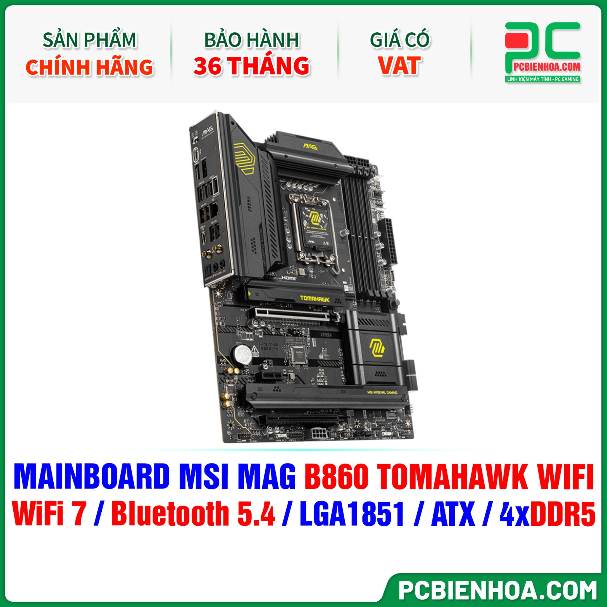 DDR5 - MAINBOARD MSI MAG B860 TOMAHAWK WIFI ( WiFi 7 / Bluetooth 5.4 / LGA1851 / ATX / 4xDDR5 )