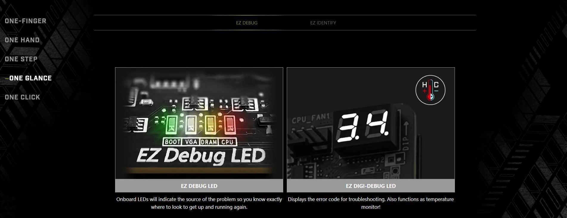 LED FEATURE | 4x EZ Debug LED 1x EZ Digit Debug LED | |