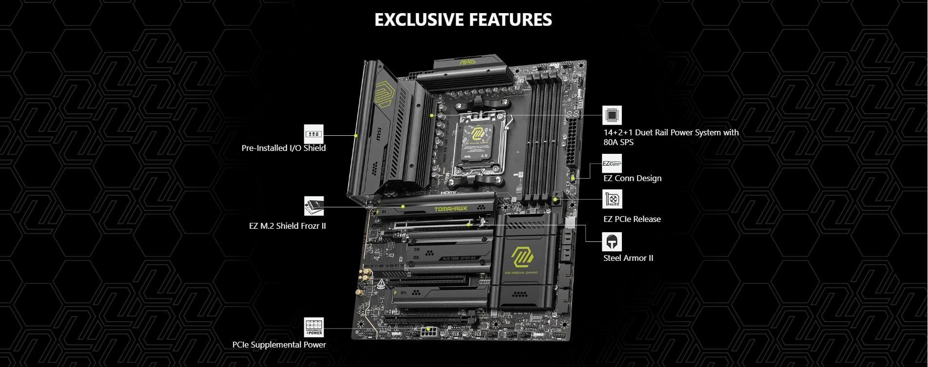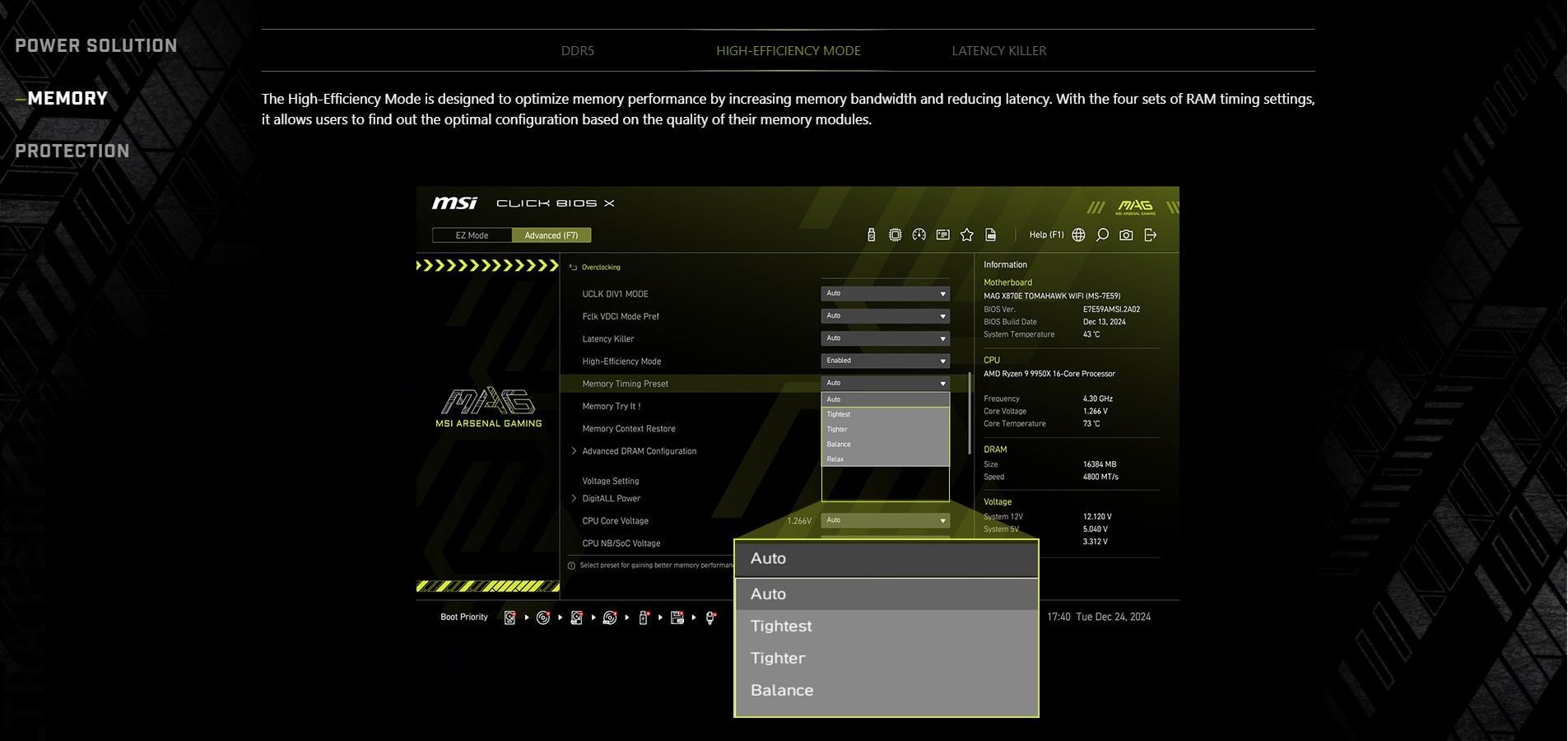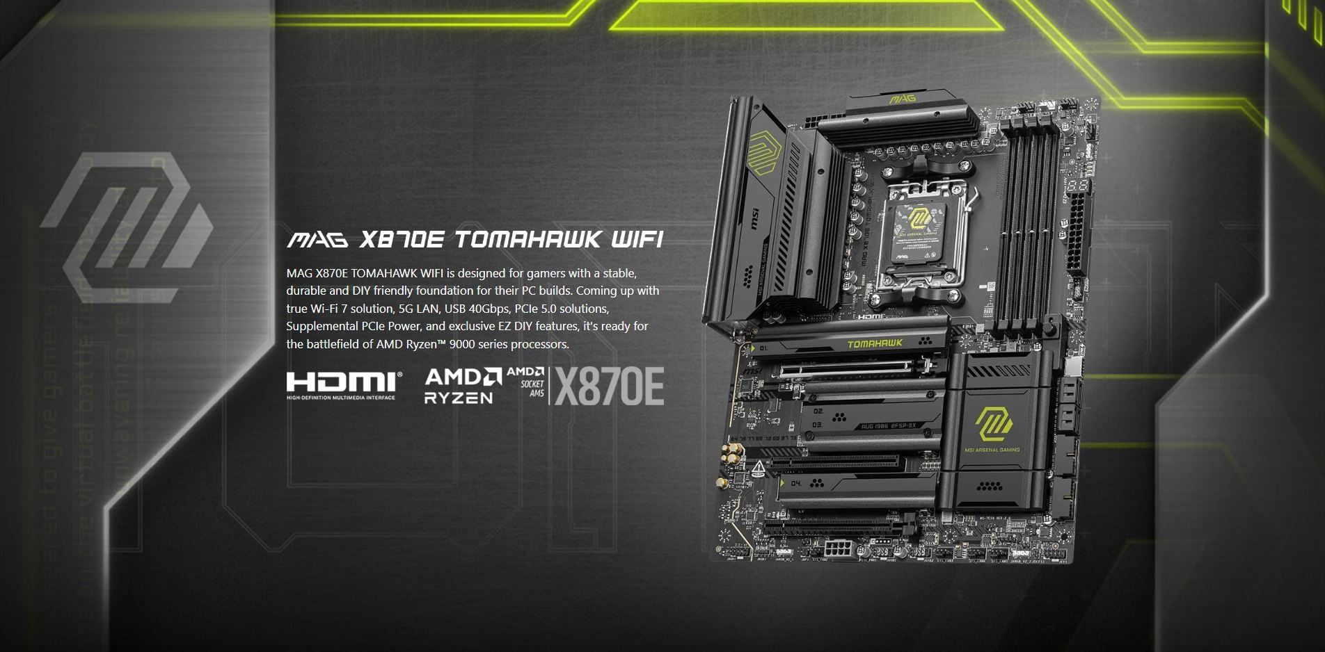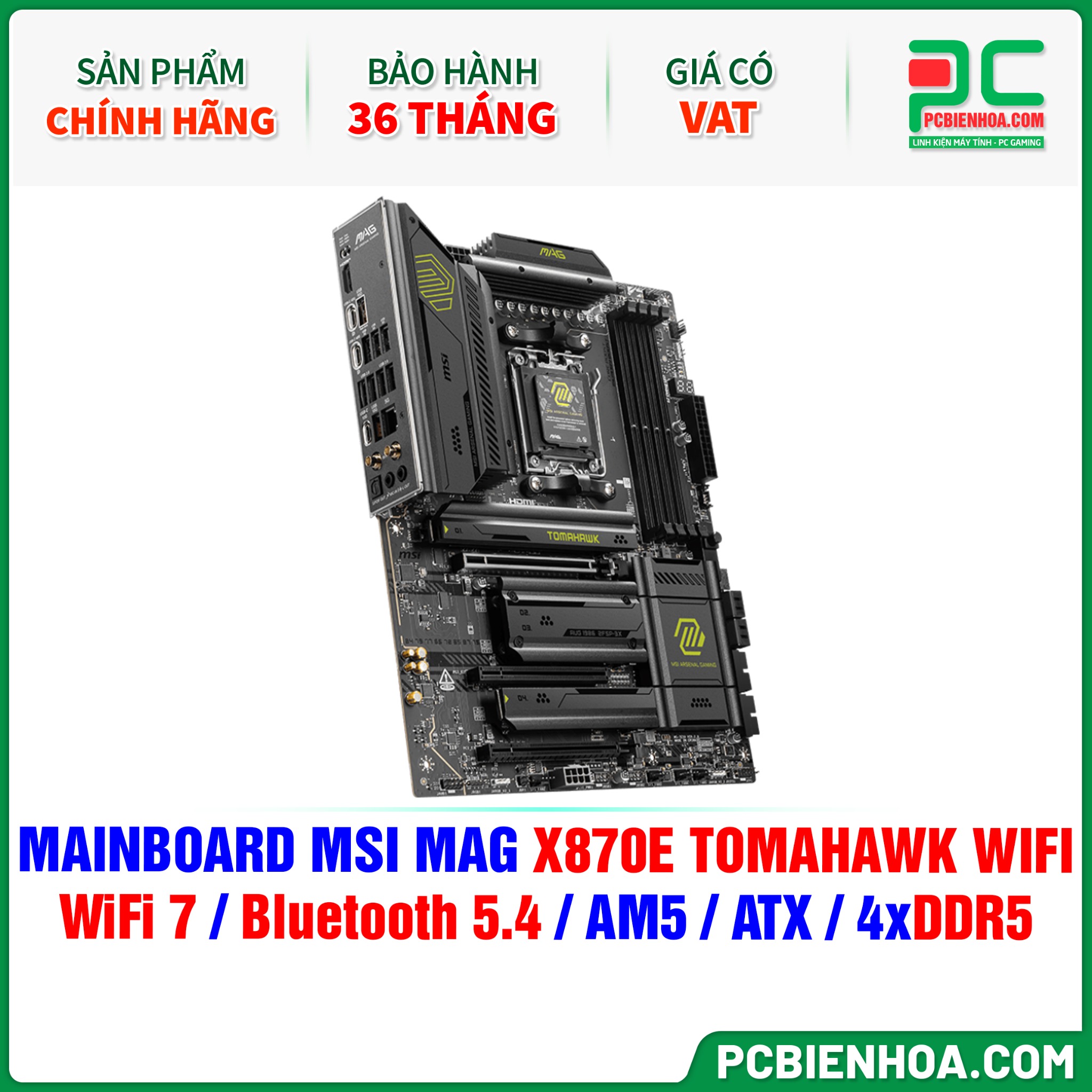DDR5 - MAINBOARD MSI MAG X870E TOMAHAWK WIFI ( WiFi 7 / Bluetooth 5.4 / AM5 / ATX / 4xDDR5 )