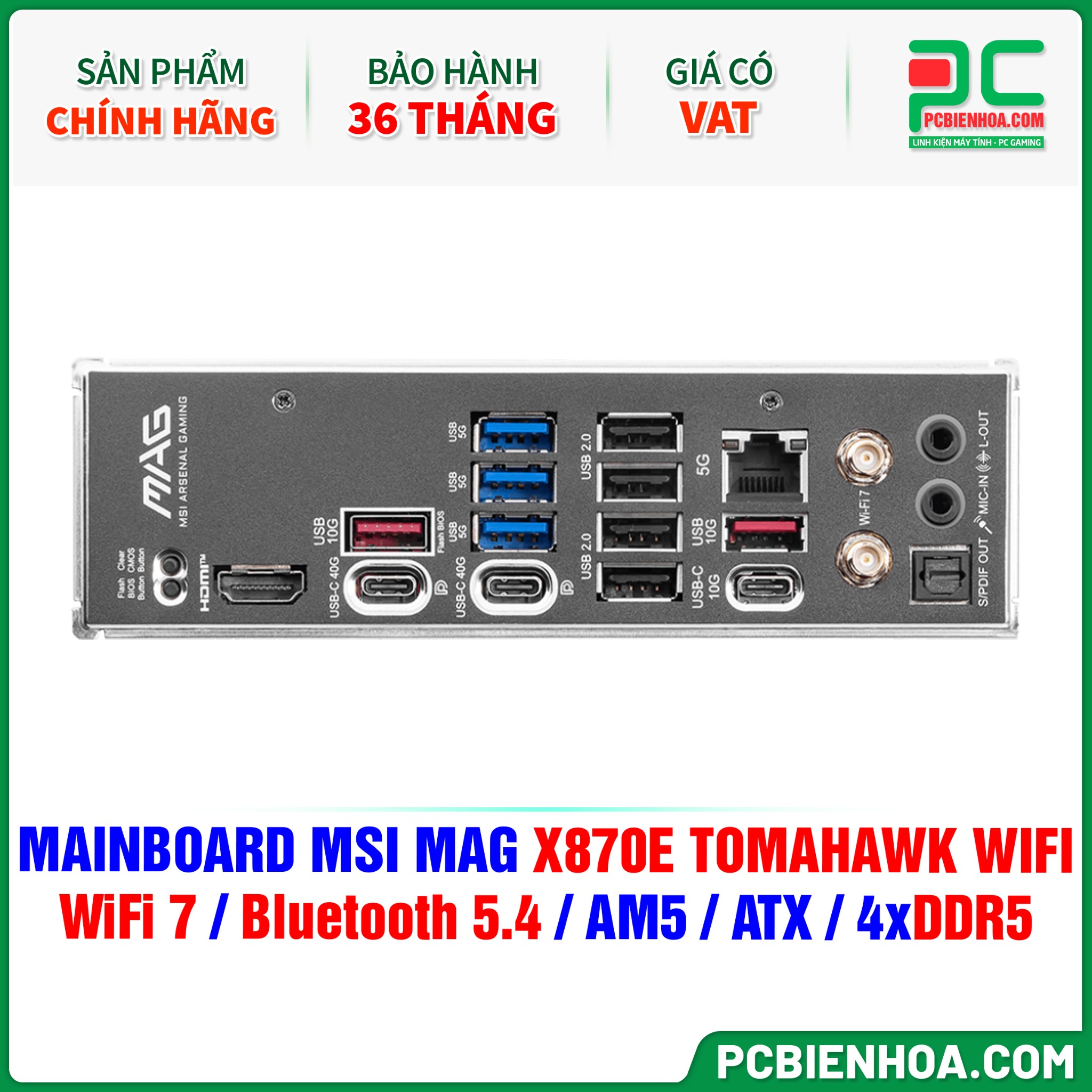 MAINBOARD MSI MAG X870E TOMAHAWK WIFI ( WiFi 7 / Bluetooth 5.4 / AM5 / ATX / 4xDDR5 )