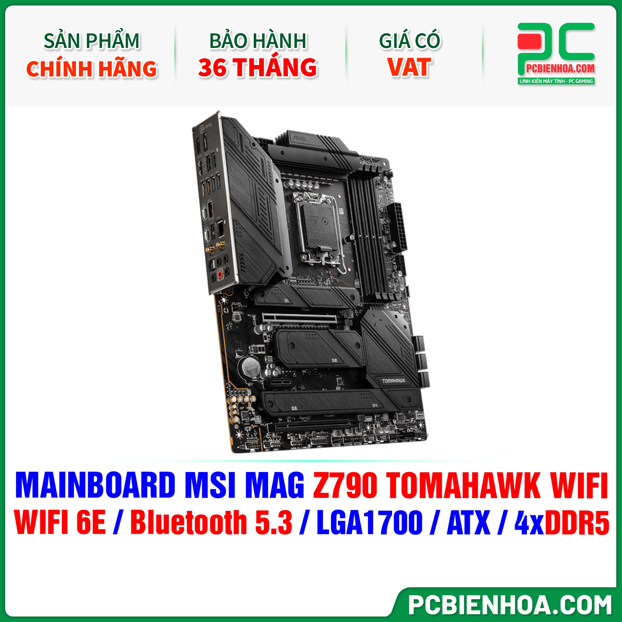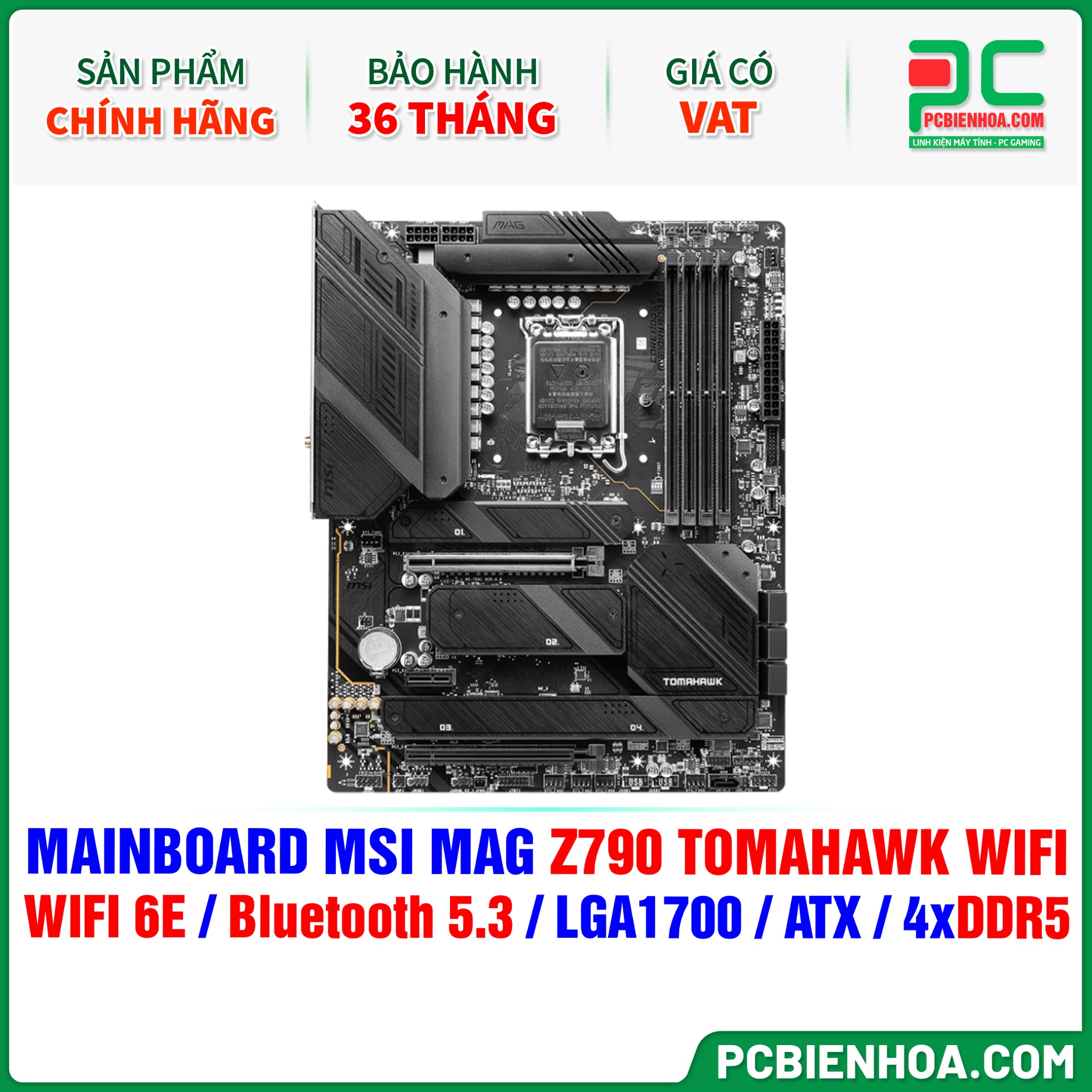 MAINBOARD MSI MAG Z790 TOMAHAWK WIFI ( WIFI 6E / Bluetooth 5.3 / LGA1700 / ATX / 4xDDR5 )