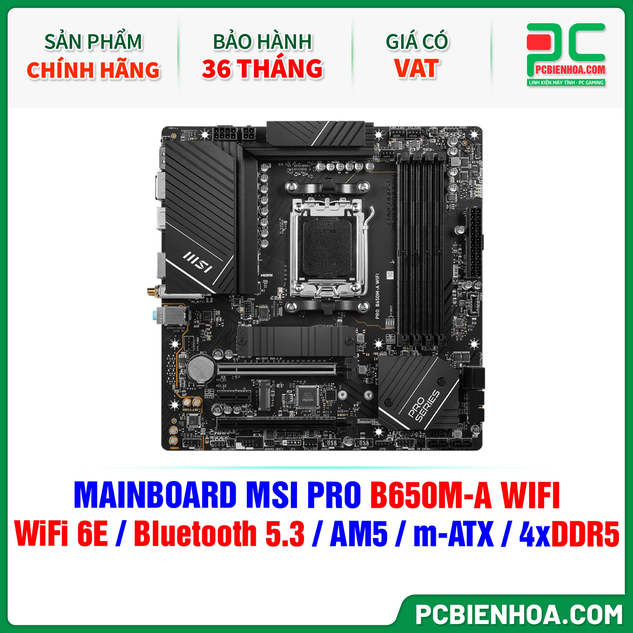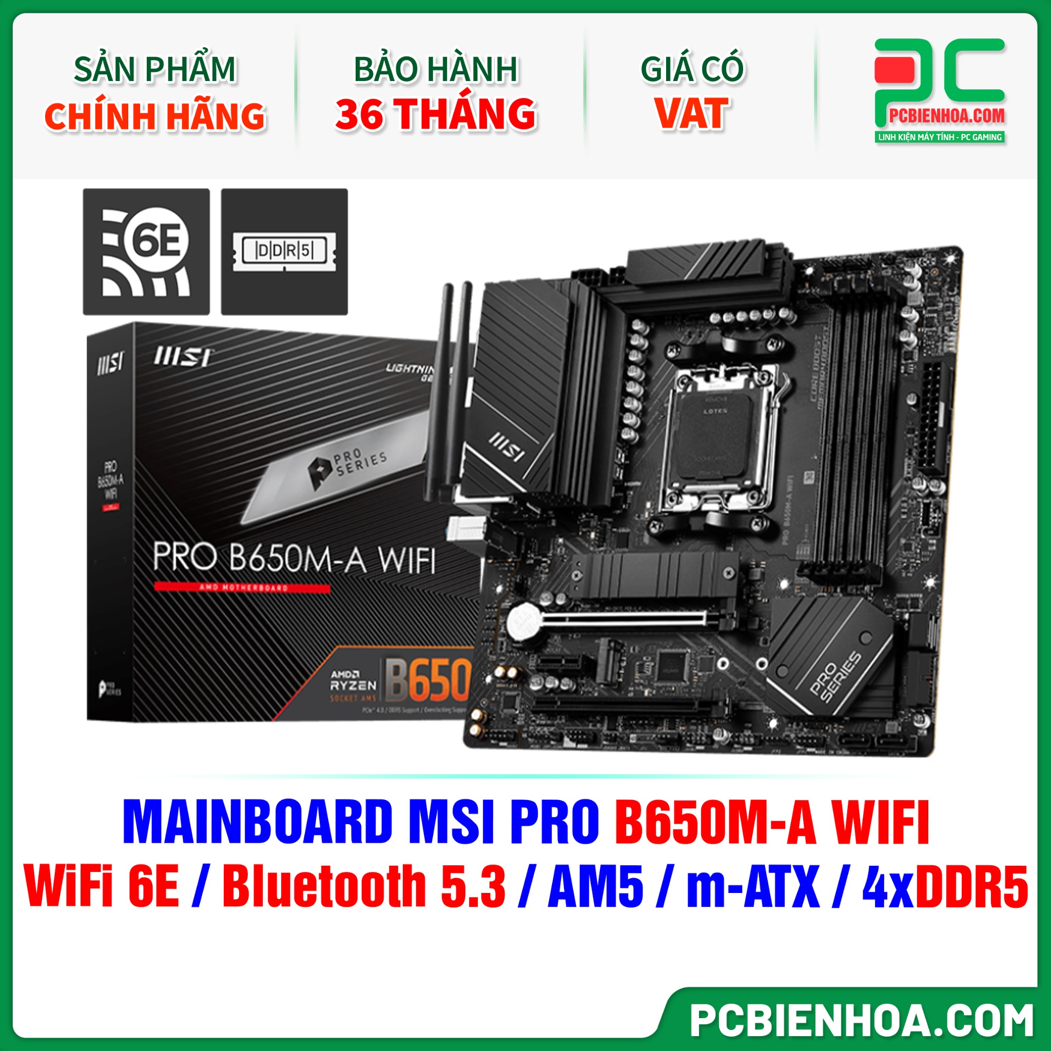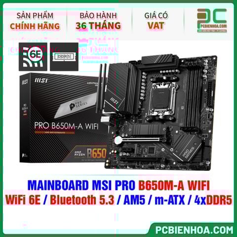 DDR5 - MAINBOARD MSI PRO B650M-A WIFI ( WiFi 6E / Bluetooth 5.3 / AM5 / m-ATX / 4xDDR5 )