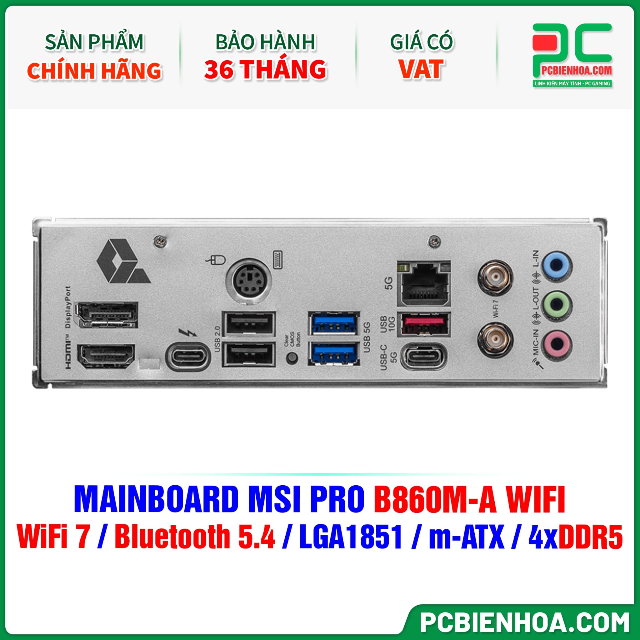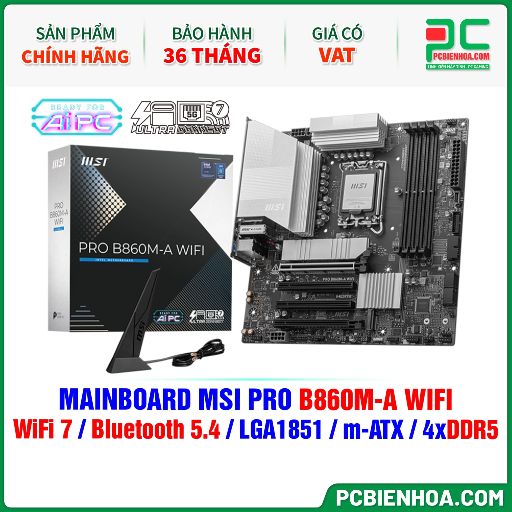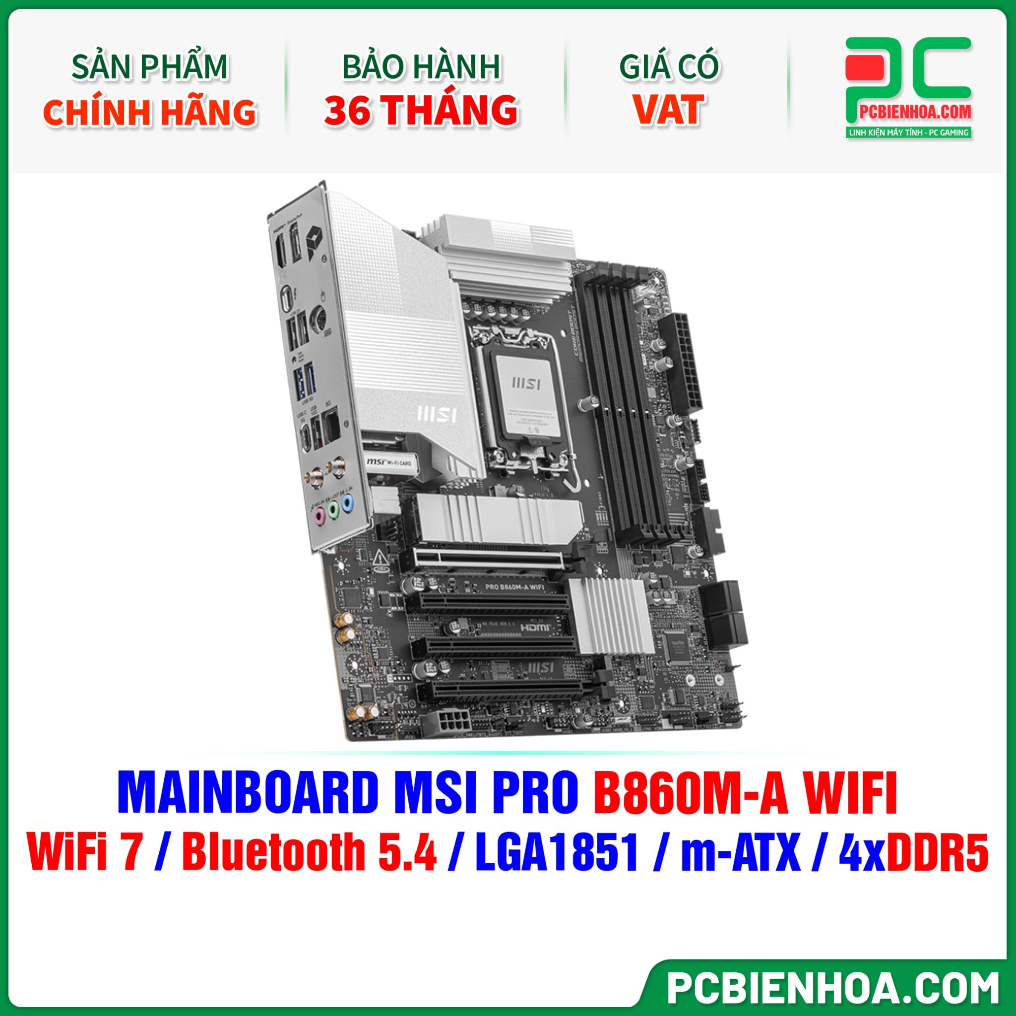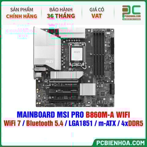 DDR5 - MAINBOARD MSI PRO B860M-A WIFI ( WiFi 7 / Bluetooth 5.4 / LGA1851 / m-ATX / 4xDDR5 )
