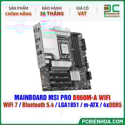MAINBOARD MSI PRO B860M-A WIFI ( WiFi 7 / Bluetooth 5.4 / LGA1851 / m-ATX / 4xDDR5 )