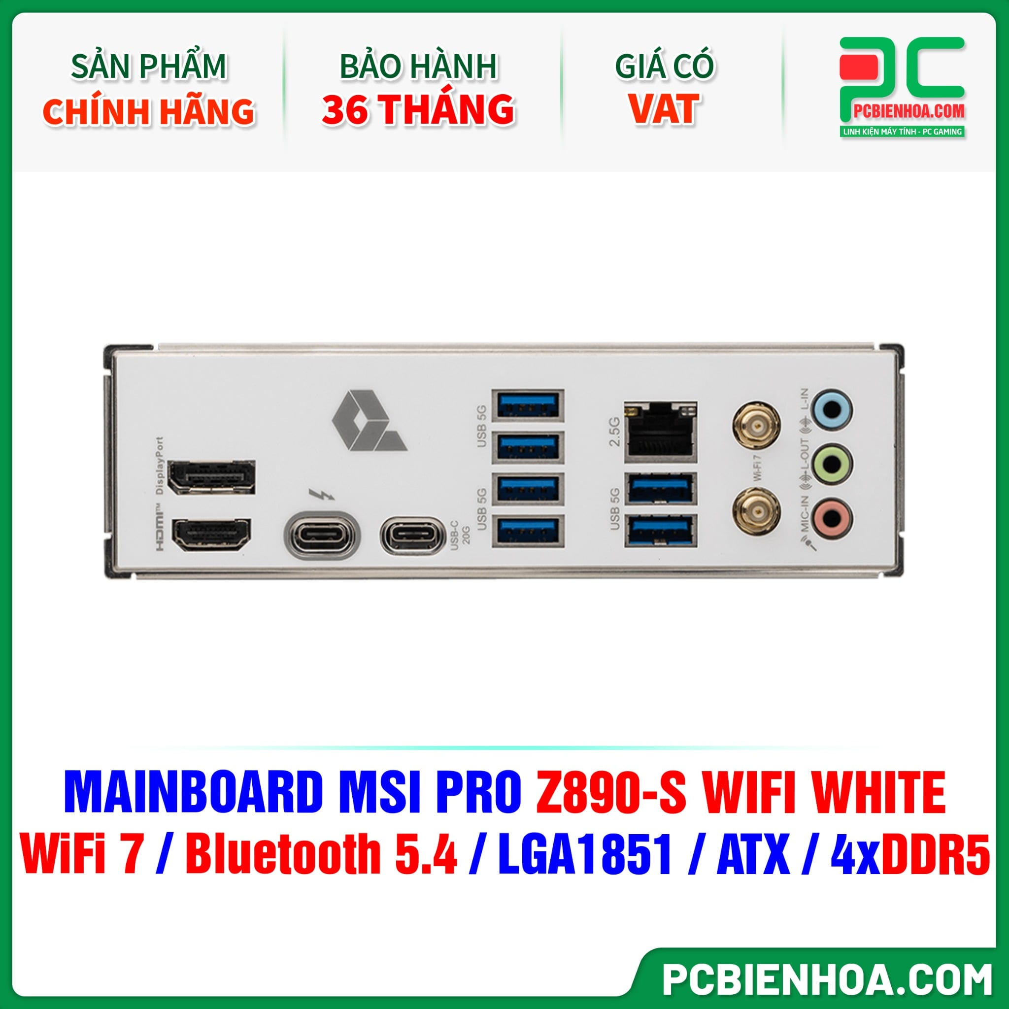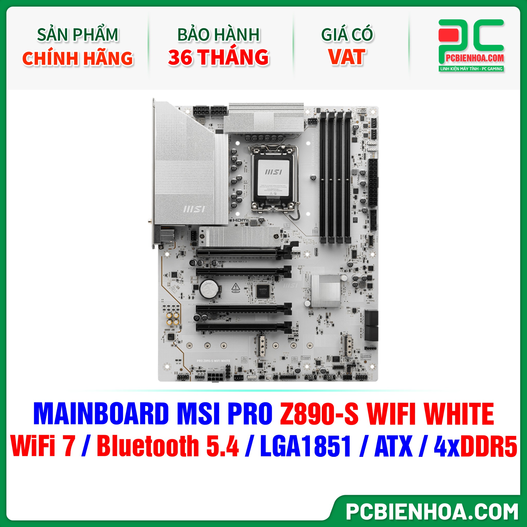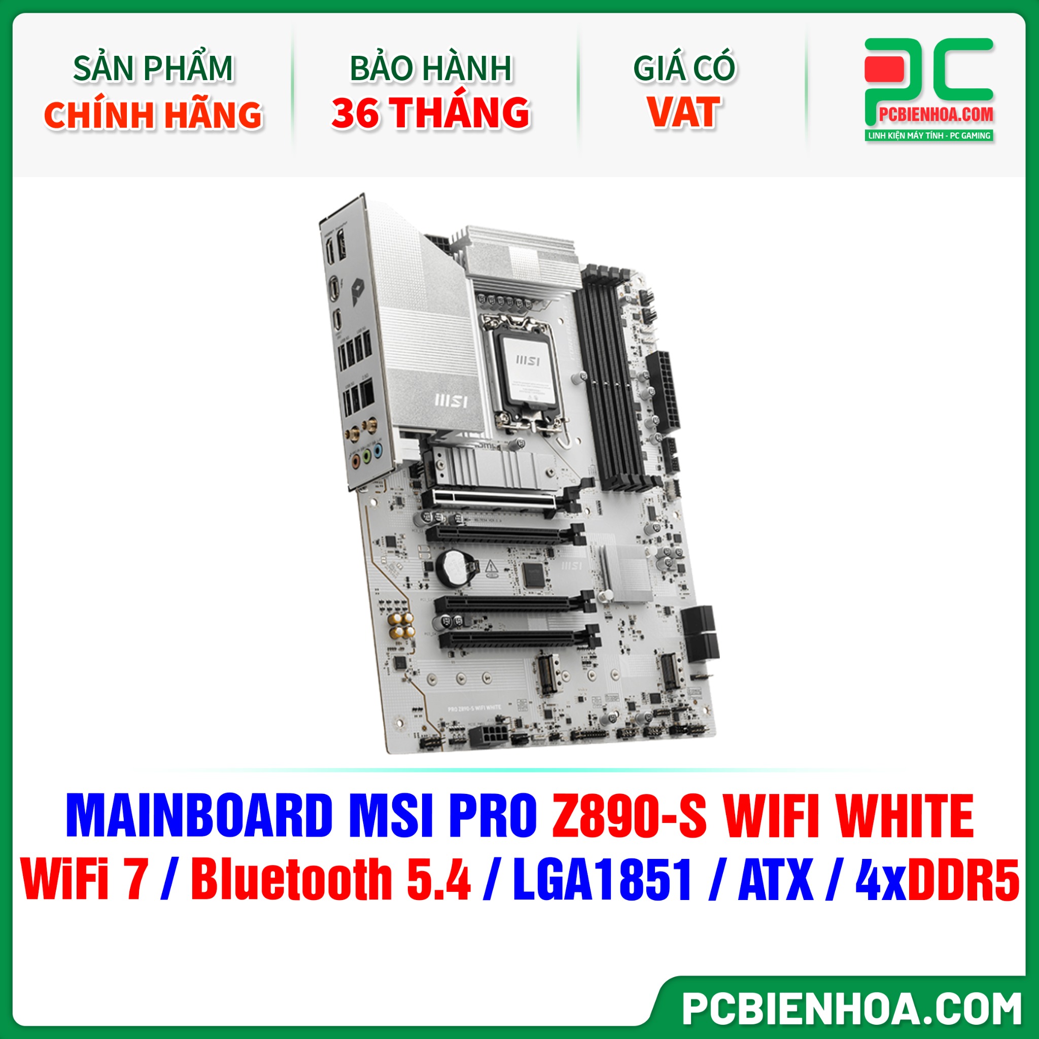 DDR5 - MAINBOARD MSI PRO Z890-S WIFI WHITE ( WiFi 7 / Bluetooth 5.4 / LGA1851 / ATX / 4xDDR5 )