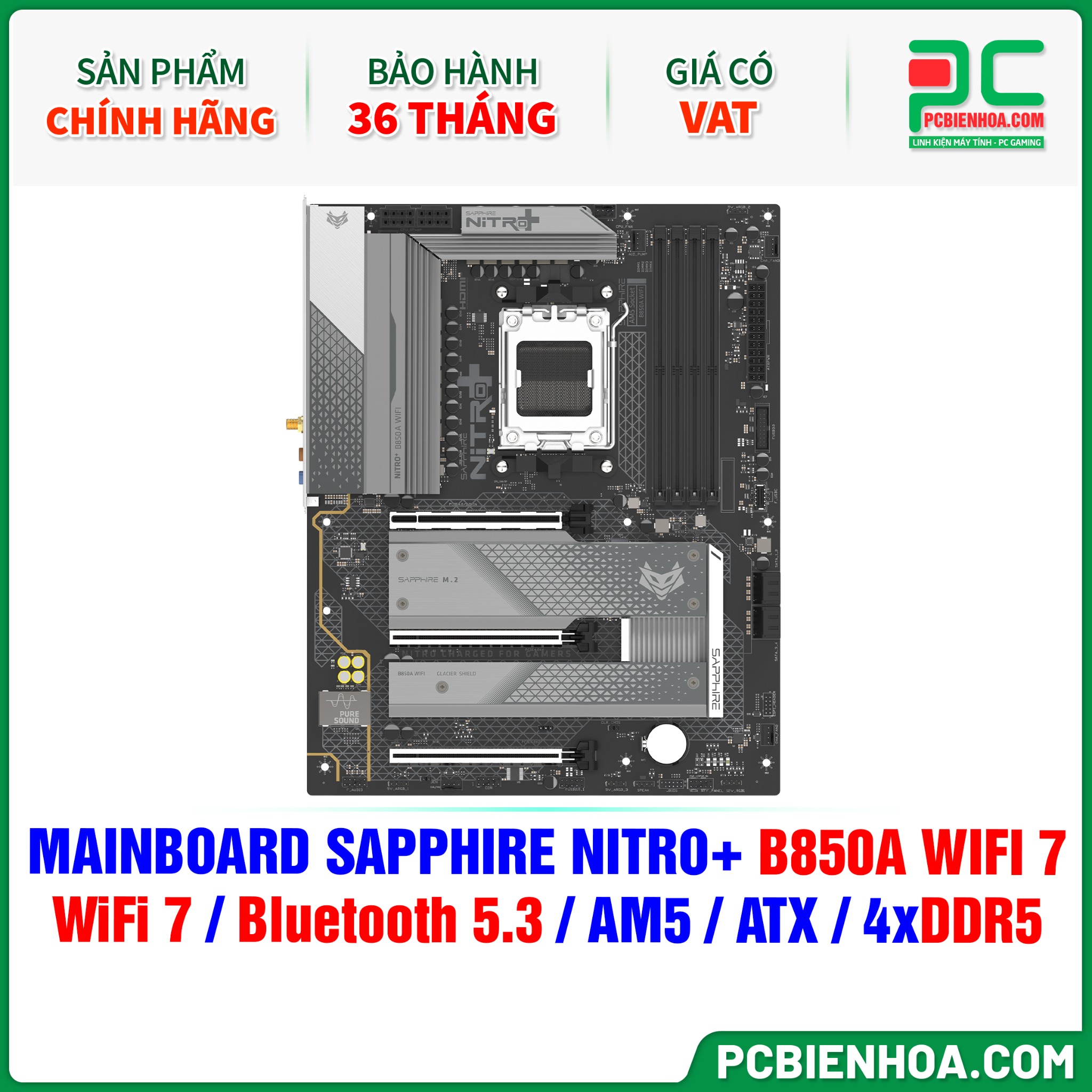 DDR5 - MAINBOARD SAPPHIRE NITRO+ B850A WIFI 7 ( WiFi 7 / Bluetooth 5.3 / AM5 / ATX / 4xDDR5 )